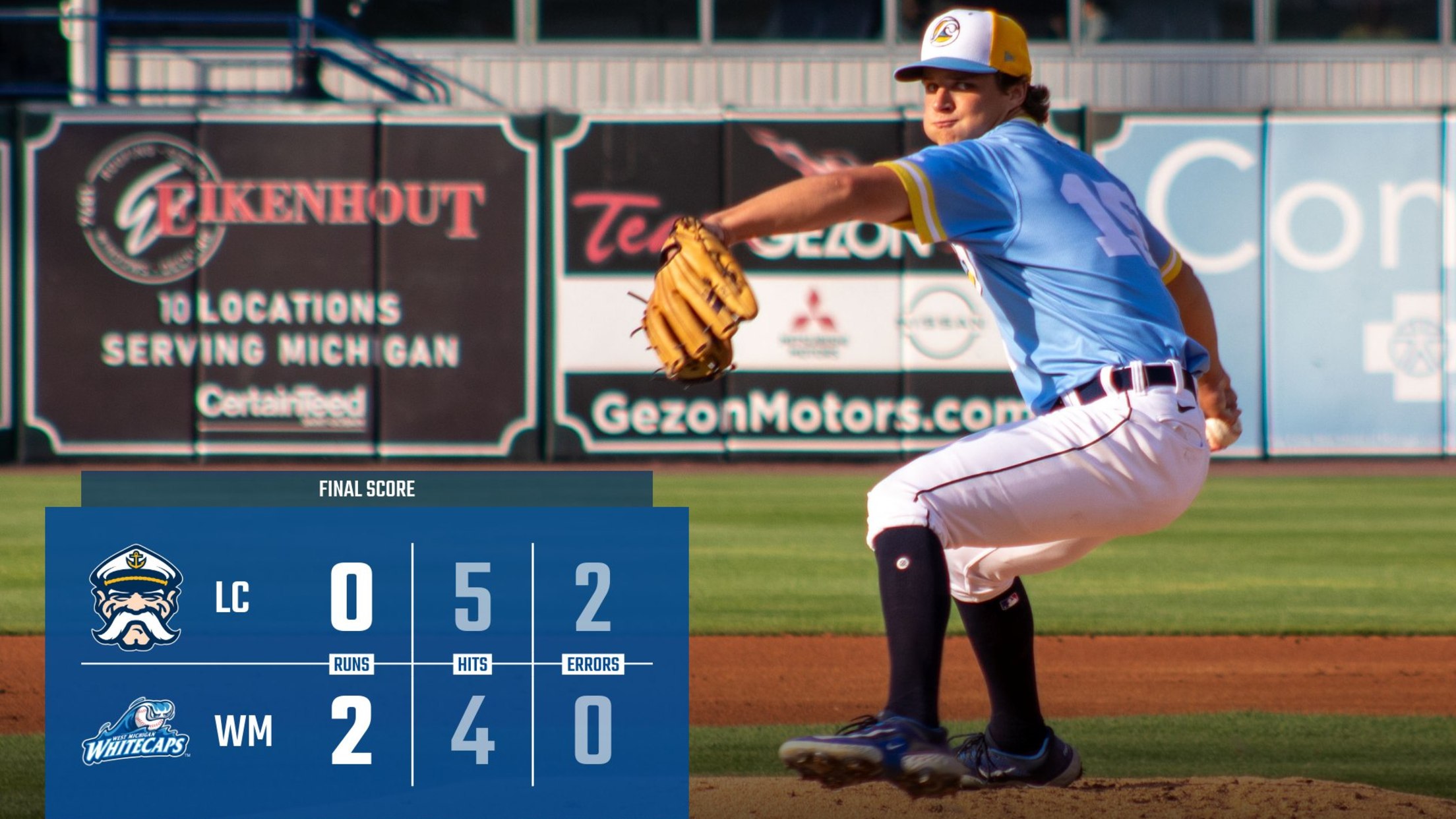 Lake County managed just two hits through the first three innings, while West Michigan struggled to generate any offense, as Captains starter Ethan Hankins opened the game with three scoreless frames and four strikeouts. The Whitecaps broke through in the fourth as Luke Gold collected an RBI single before Roberto Campos added an RBI, forging West Michigan in front 2-0. In the seventh inning, Lake County loaded the bases with two outs before 'Caps reliever Gabe Sequeira delivered a strikeout to end the threat and maintain the 2-0 advantage. Lake County failed to rally in the eighth or ninth as Sequeira and Trevin Michael combined for two shutout frames with four punchouts to slam the door and earn the 2-0 shutout win.
