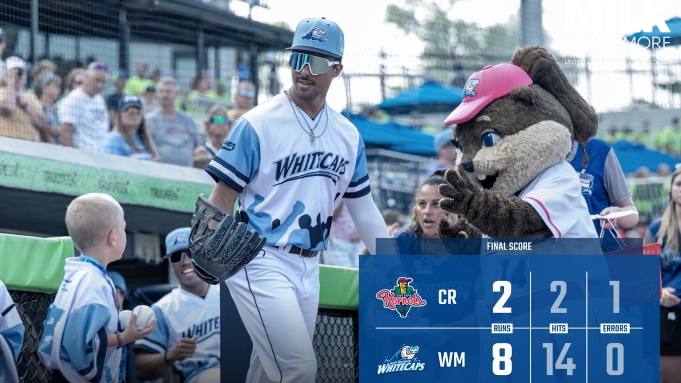 Howey was untouchable through the first four innings, allowing just two baserunners on no hits while adding five strikeouts as West Michigan broke through with three runs in the fifth, featuring an RBI single from outfielder Austin Murr, jumping in front 3-0. The Kernels responded in the sixth with solo homers from outfielder Caden Kendle and designated hitter Eduardo Tait, trimming the lead to 3-2. West Michigan then exploded for five runs in a single inning for the second consecutive night, plating five in the seventh, highlighted by a pair of RBI singles from John Peck and Andrew Jenkins, taking a commanding 8-2 lead. Whitecaps closer Dariel Fregio then slammed the door in the final two frames, retiring six-straight Kernels batters while adding three strikeouts to close the book on the 8-2 victory.