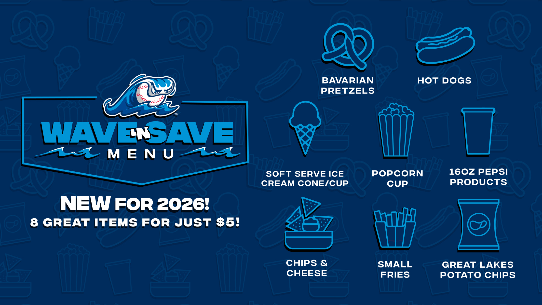 The Wave ‘n’ Save Menu will be available at LMCU Ballpark beginning with the West Michigan Whitecaps' home opener on Tuesday, April 7, 2026.
