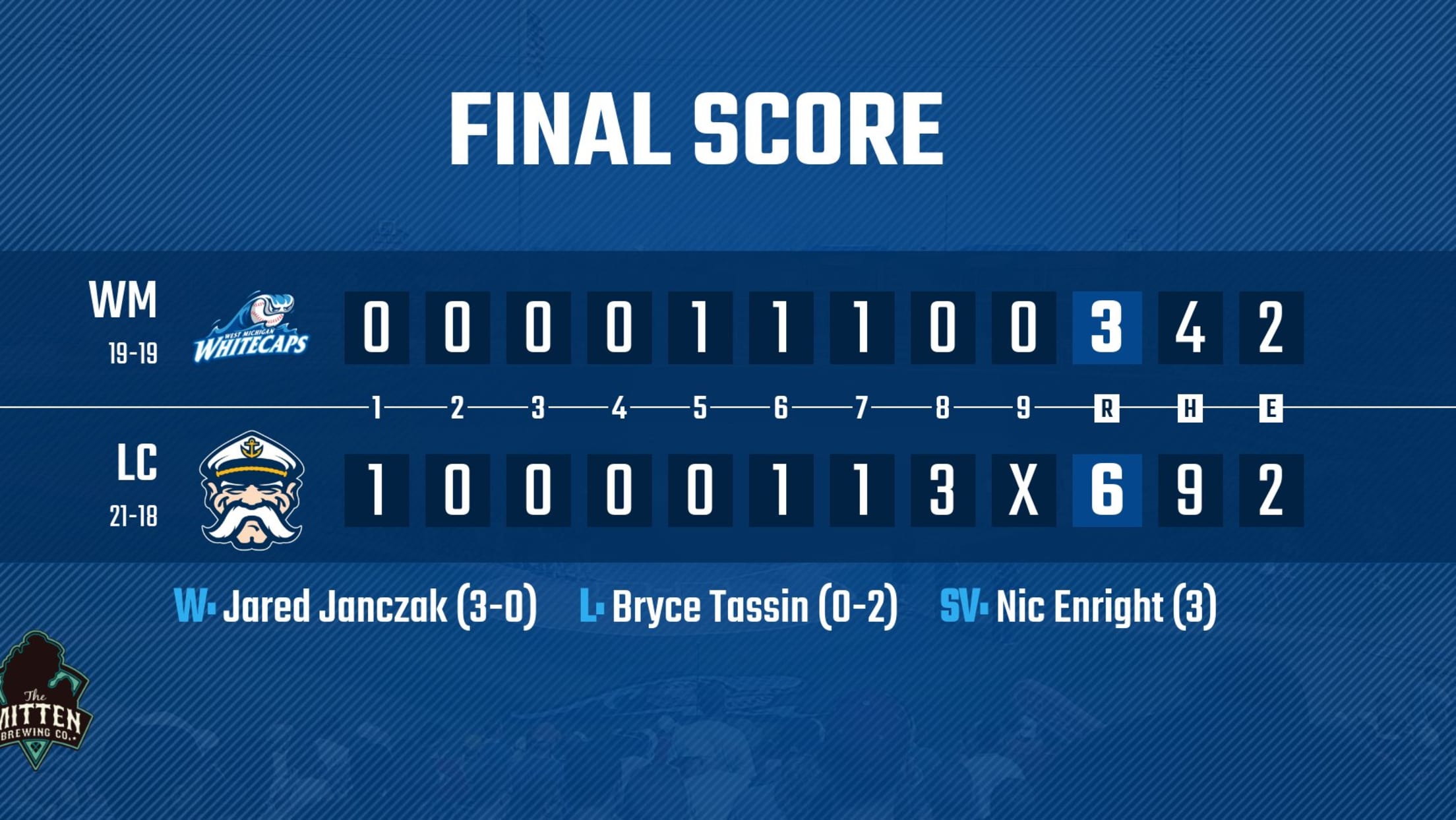 Captains reliever Jared Janczak (3-0) tossed a scoreless inning to earn his third win of the season, while Bryce Tassin (0-2) gave up two runs in relief to take the loss. Lake County reliever Nic Enright pitched a scoreless ninth to secure his third save. The Captains improve to 21-18 as the Whitecaps fall for the fourth straight game to 19-19. Eliezer Alfonzo’s run-scoring single in the seventh extended his hitting streak to a season-best eight games.