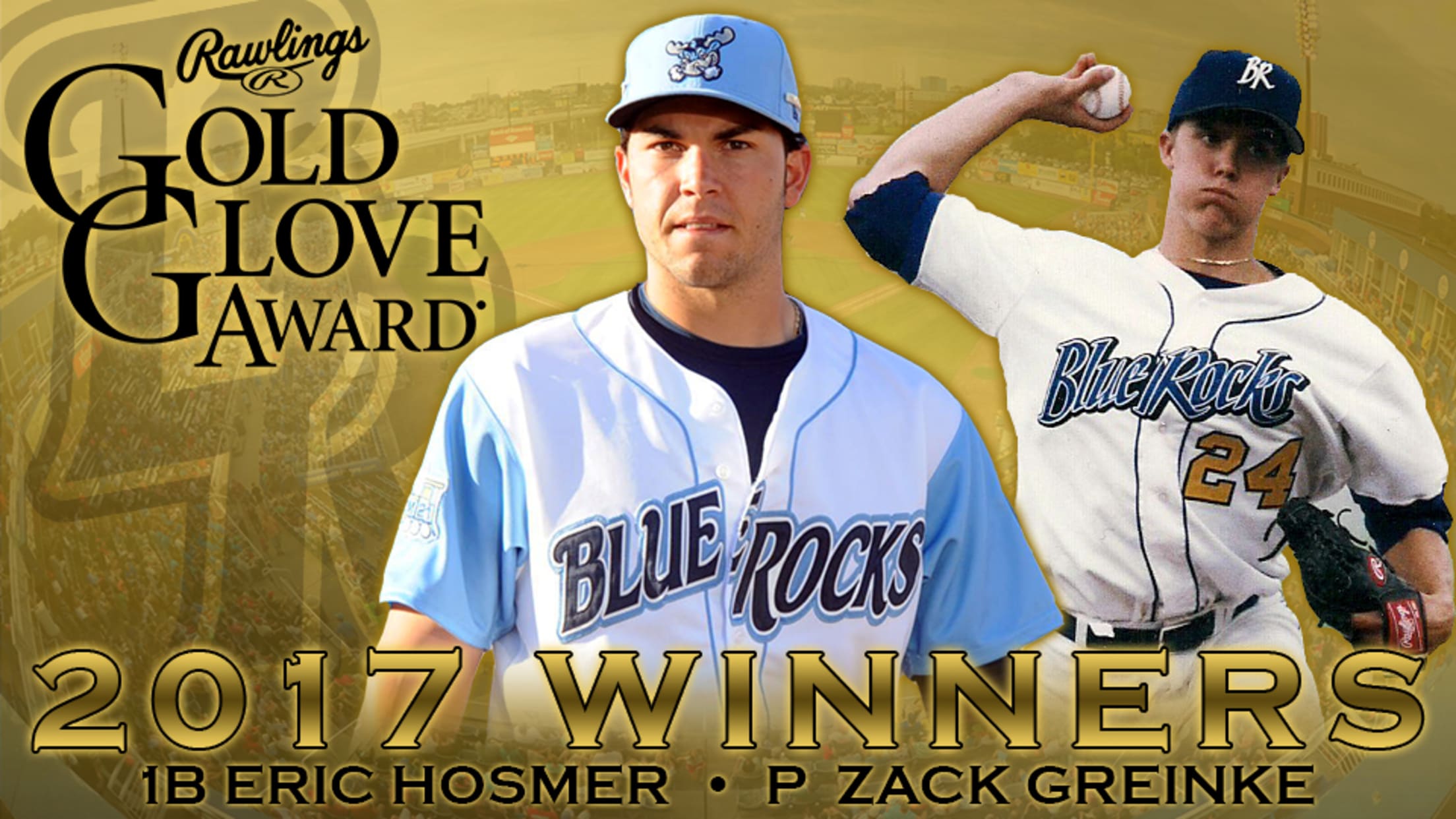 Wilmington, DE - Former Wilmington Blue Rocks Eric Hosmer and Zack Greinke were named Rawlings Gold Glove winners on Tuesday. Fellow Wilmington alum Salvador Perez was a finalist for his fifth consecutive award, but finished second in the voting among AL catchers. The awards were voted on by managers and coaches from the American and National Leagues and honor the best individual fielding performances at each position in both leagues.