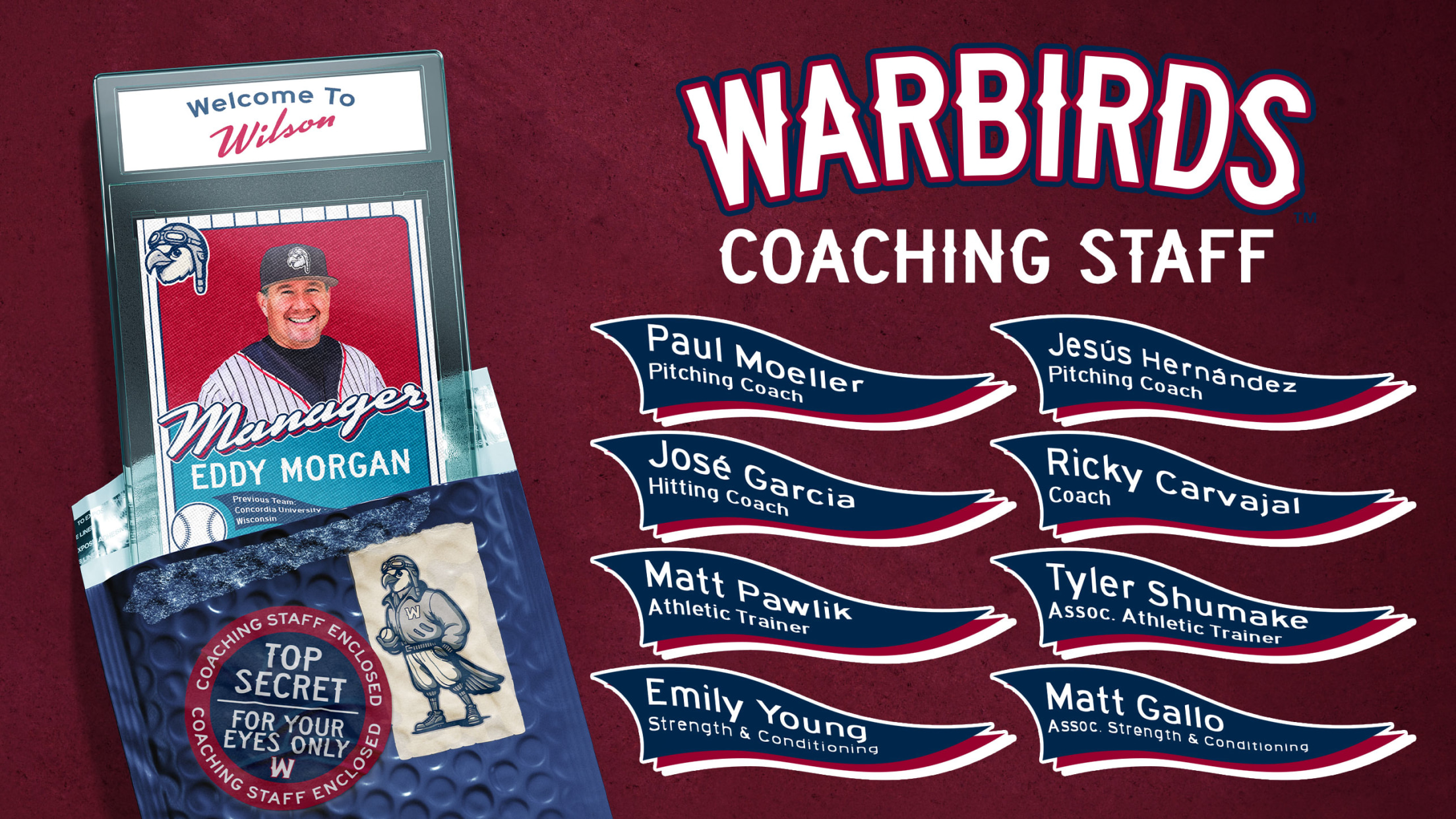 WILSON, N.C. – The Milwaukee Brewers today announced that Eddy Morgan will manage the Wilson Warbirds for the team’s debut season in 2026. The announcement came as the Brewers unveiled their player development staff assignments for the 2026 season including Minor League managers and coaches for Wilson along with Milwaukee’s