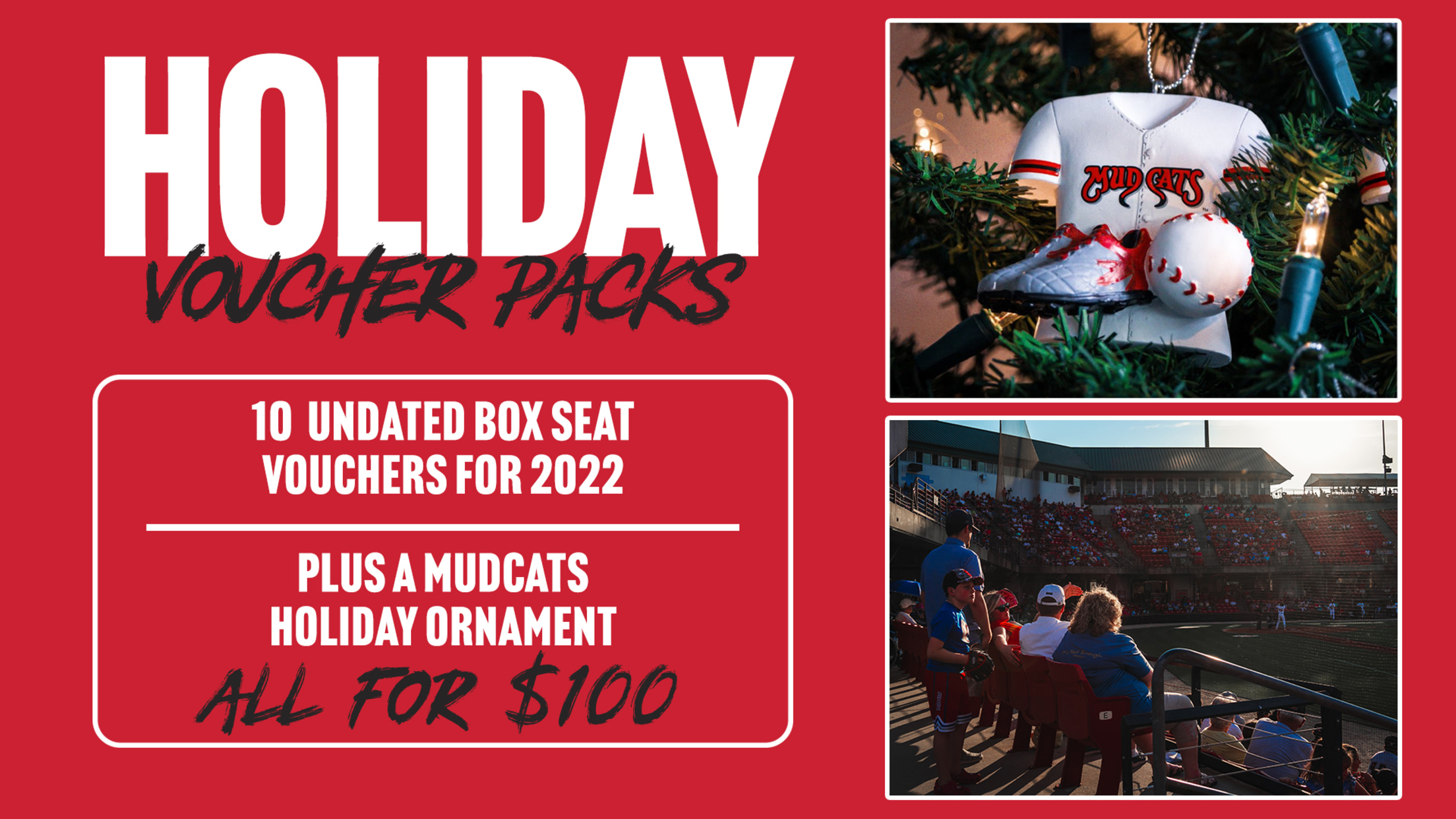 ZEBULON - The holiday season is in full-swing and the Mudcats have a new holiday ornament and ticket package ready just in time for those looking for fun gift ideas. The new holiday package is $100 and includes a Mudcats themed holiday ornament and 10 undated box seat ticket vouchers