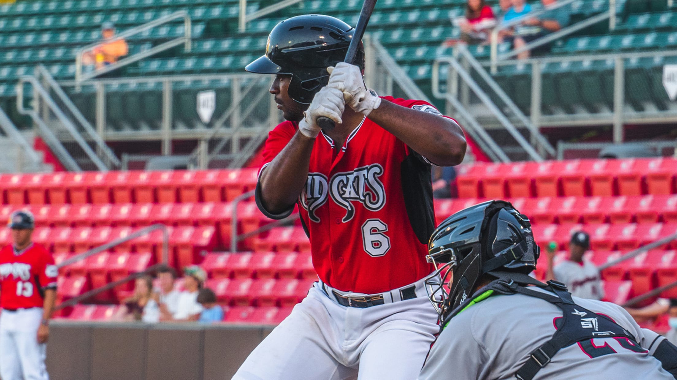 Mudcats 8th (Woodpeckers 14, Mudcats 6) -- Gabe Holt grounds out, Shay Whitcomb to Luke Berryhill. Felix Valerio doubles to center field. Joe Gray Jr. strikes out swinging. Wild pitch by Jayson Schroeder, Felix Valerio to 3rd. Ernesto Martinez walks. Wild pitch by Jayson Schroeder, Felix Valerio scores; Ernesto Martinez to 3rd. Zavier Warren walks. Joey Wiemer walks. Pitcher Change: Jonathan Sprinkle replaces Jayson Schroeder. Darrien Miller grounds out, Yohander Martinez to Luke Berryhill.
