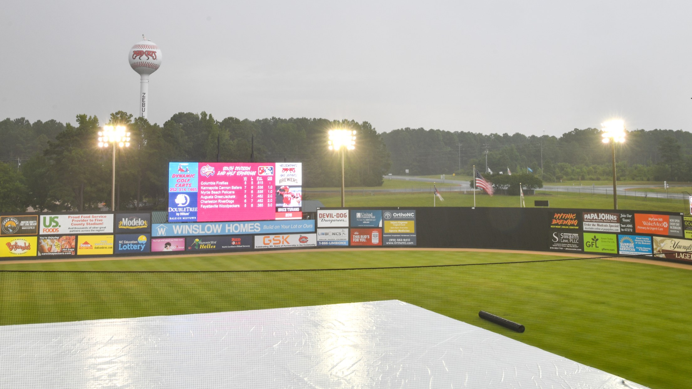 ZEBULON, N.C. - Tonight’s game between the Carolina Mudcats and Fayetteville Woodpeckers was suspended in the middle of the fourth inning due to rain at Five County Stadium. The scoreless game will resume as part of a de facto doubleheader beginning at 12:00 p.m. on Sunday afternoon at Five County Stadium in Zebulon.