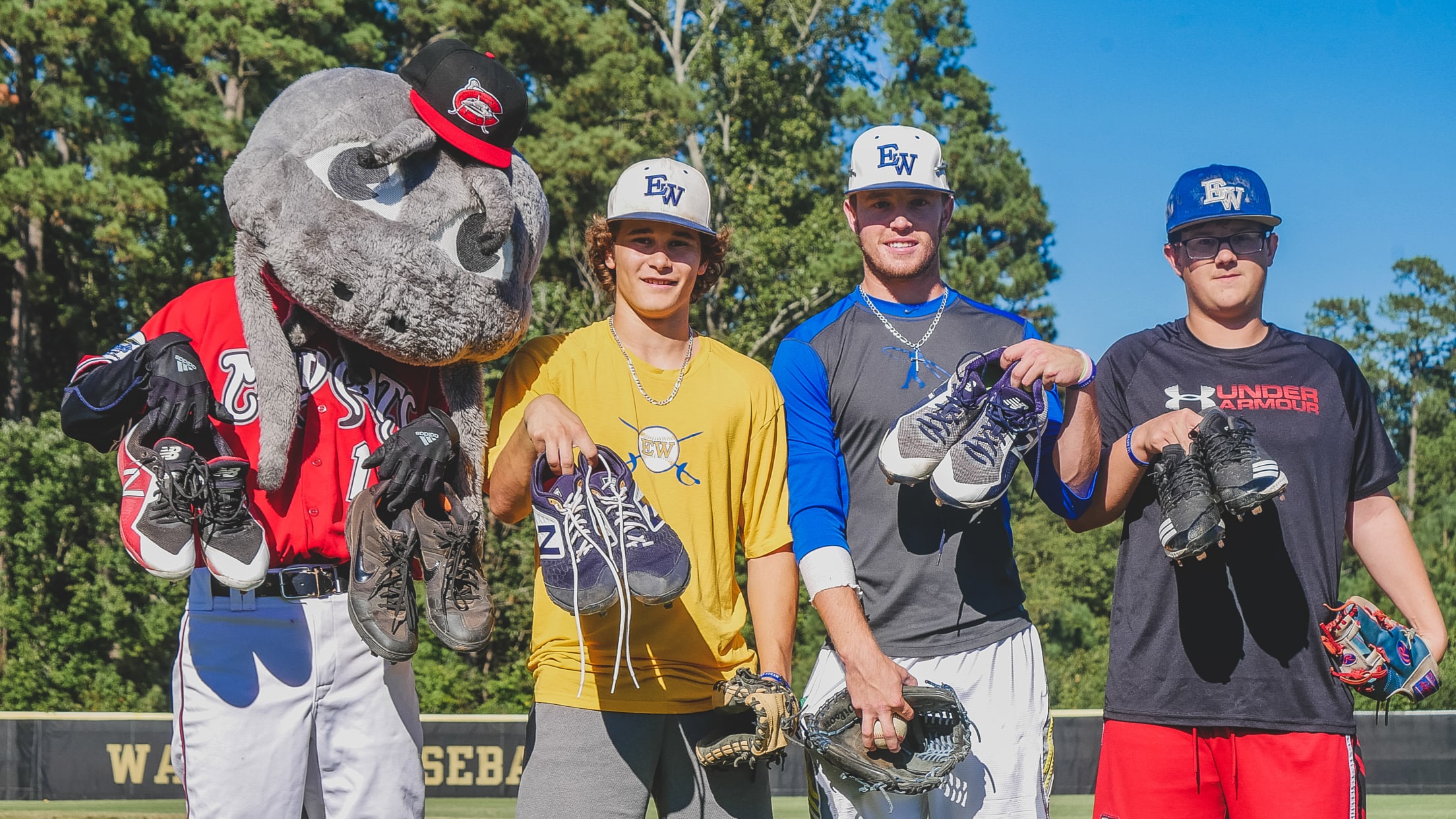 ZEBULON, N.C. - The Carolina Mudcats, the Class-A Advanced affiliate of the Milwaukee Brewers, today donated over 50 game ready cleats and baseball equipment to the baseball program at East Wake High School in Wendell, NC. The equipment and donated cleats were worn or used by several Mudcats players throughout