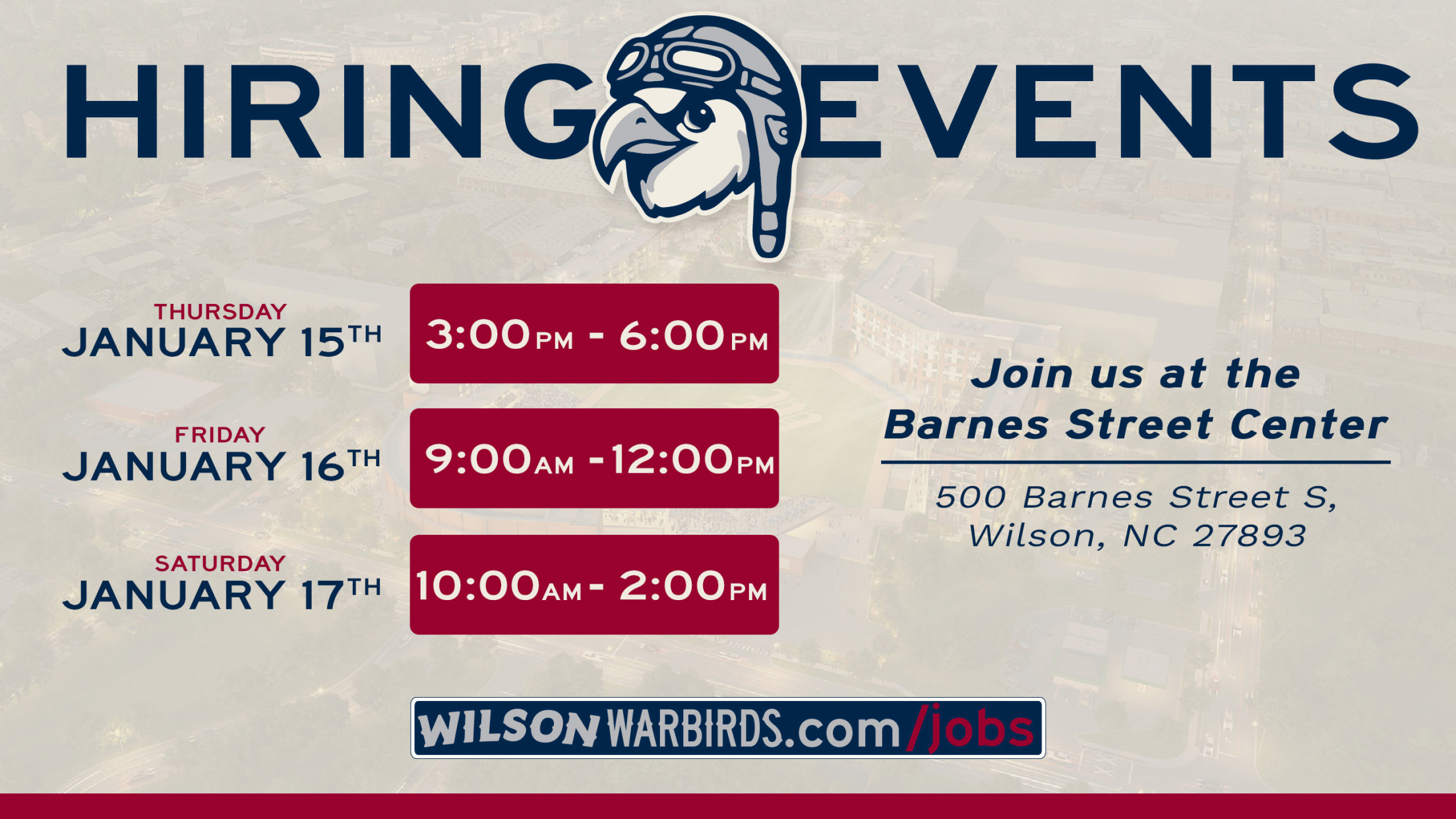 WILSON, N.C. – The Wilson Warbirds are taking flight for an exciting inaugural season and are looking for enthusiastic individuals to join our Crew! We are now hiring Game Day seasonal staff, a unique opportunity to help create an unforgettable fan experience. Game Day seasonal staff are an integral part