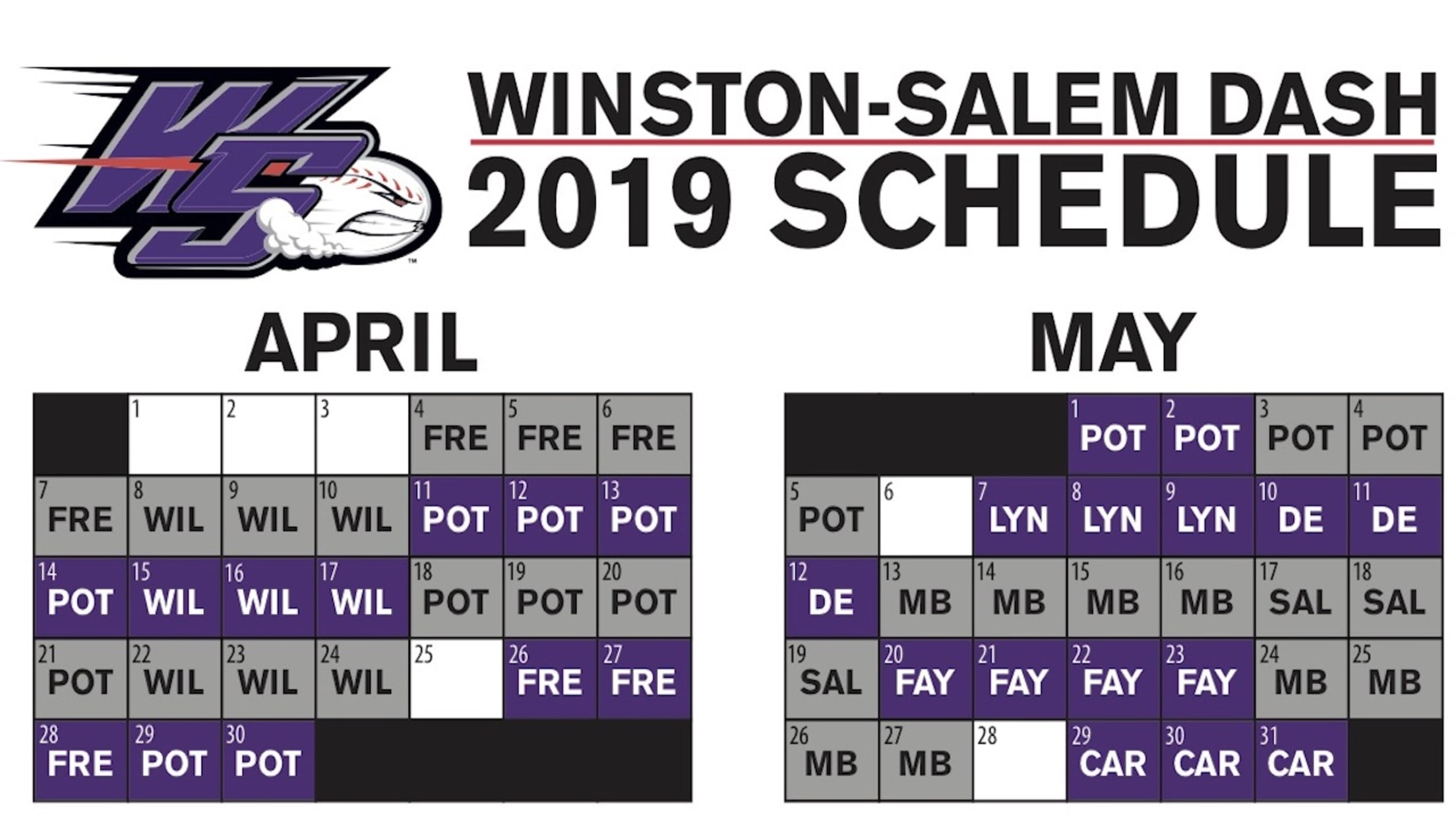 WINSTON-SALEM, N.C. (Sept. 20, 2018) - The Winston-Salem Dash have announced their 2019 schedule, which will mark the 10th season in BB&T Ballpark's history. The slate includes 70 home games and 32 home weekend games (Friday, Saturday or Sunday). The full 140-game schedule is available here. Game times will be announced at a later date.