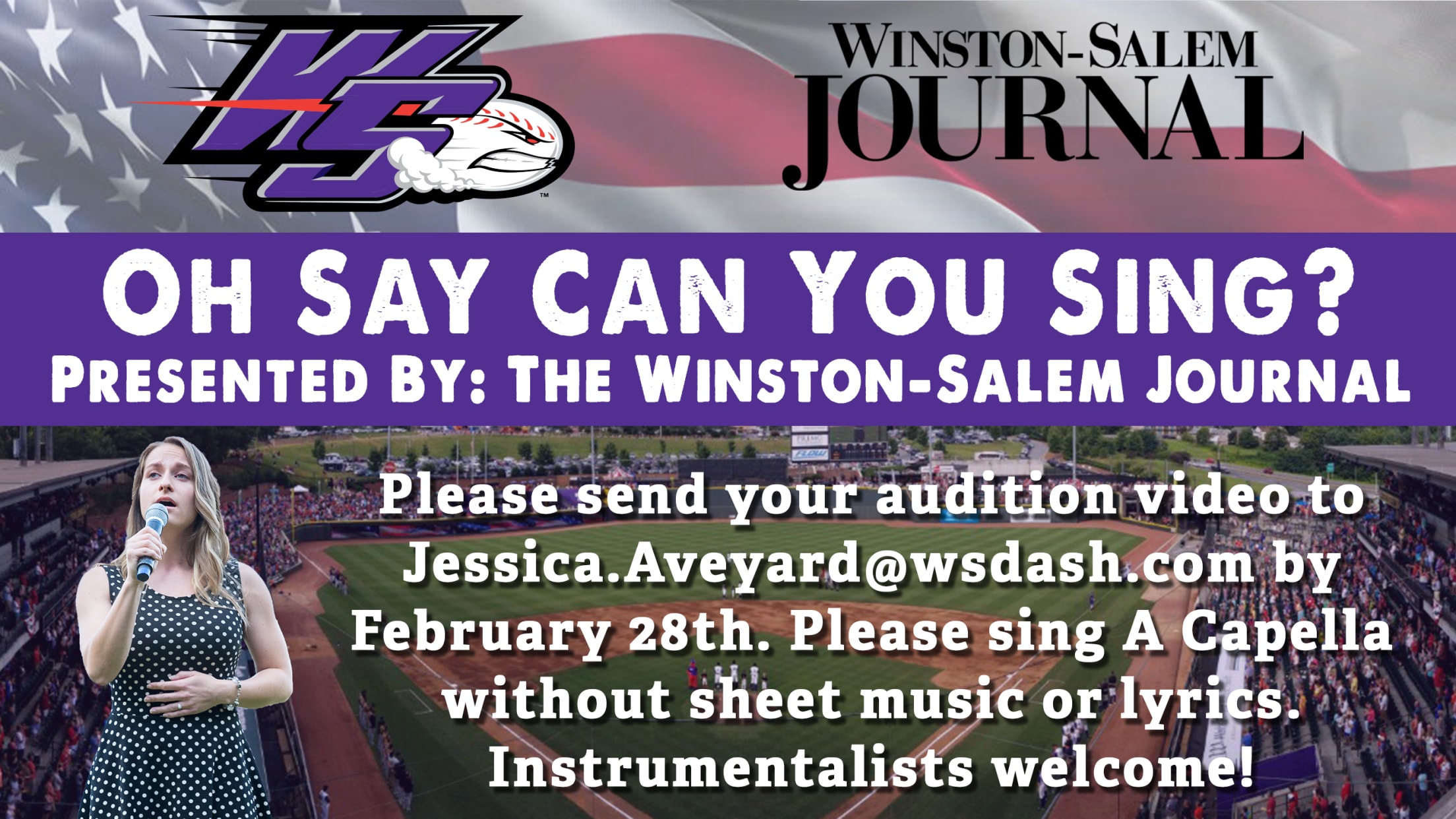 WINSTON-SALEM, N.C. (Feb. 16, 2018) - Oh, Say Can You Sing? The Winston-Salem Dash want to find out! The Dash and the Winston-Salem Journal will host their 2018 National Anthem Tryouts on Saturday, March 10, from 10:30 a.m. to 1 p.m. on the lower level of Hanes Mall below the food court. There will be two rounds of auditions.