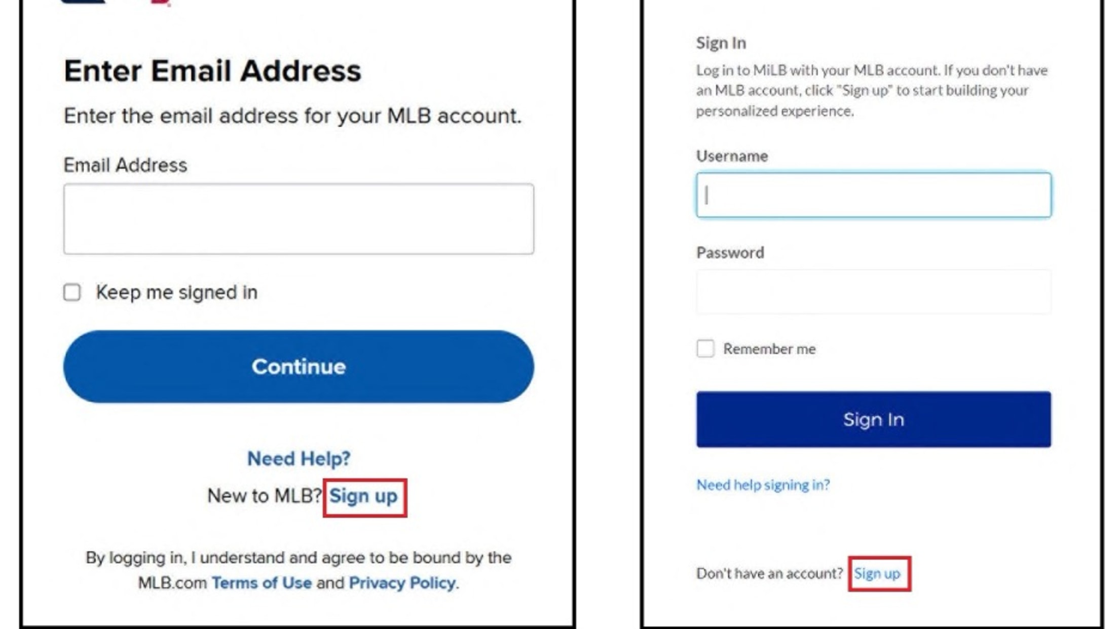 You can create an MLB account across any MiLB or MLB digital platform. When prompted on any login page on MiLB.com, MLB.com, or in the MiLB or MLB app, click “Sign up” to create a new account.