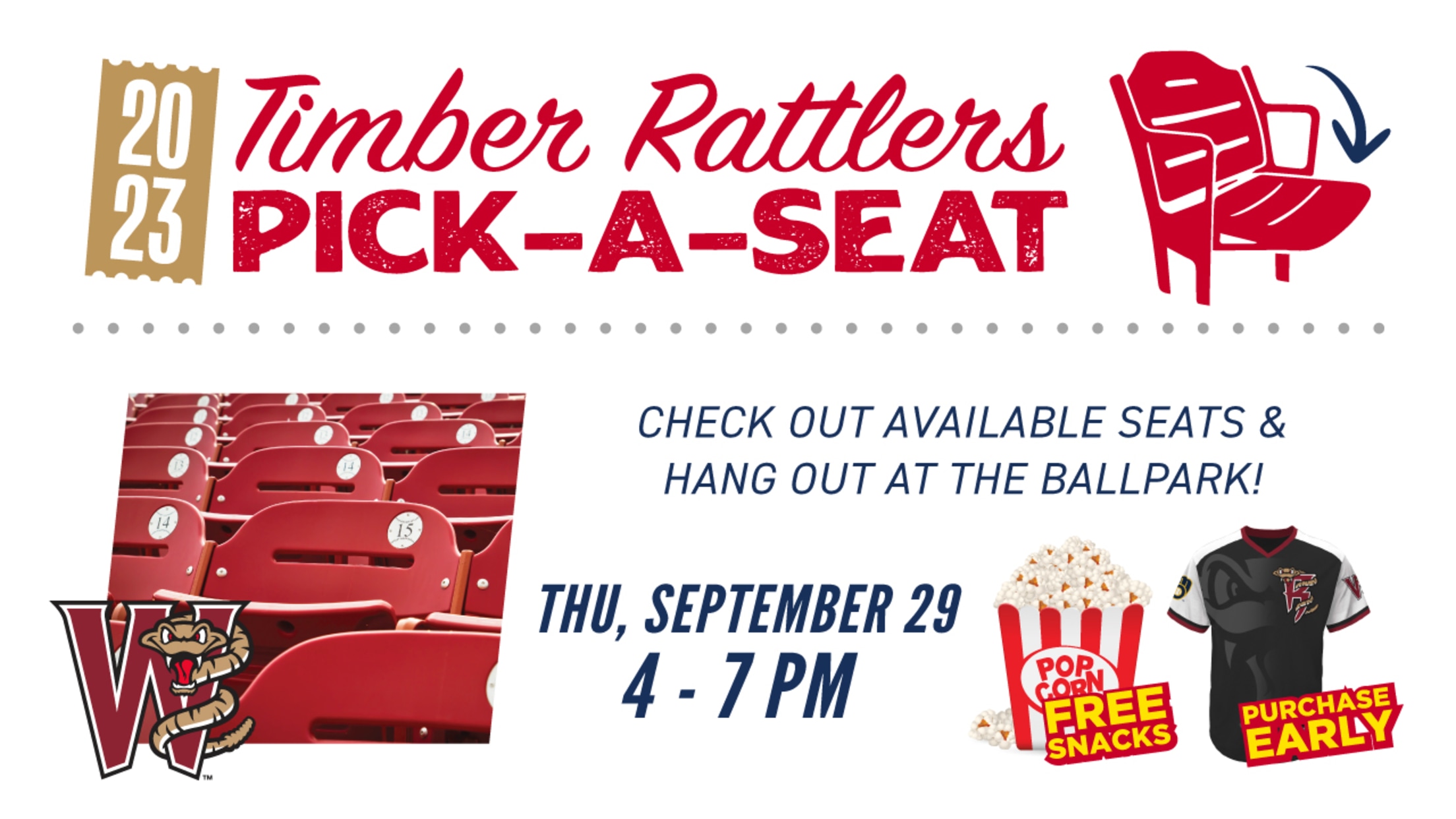 GRAND CHUTE, WI – The time is now to secure great seat locations and season ticket packages for the 2023 Wisconsin Timber Rattlers season. Neuroscience Group Field at Fox Cities Stadium will hold their annual Pick-A-Seat event Thursday, September 29 from 4:00pm to 7:00pm.