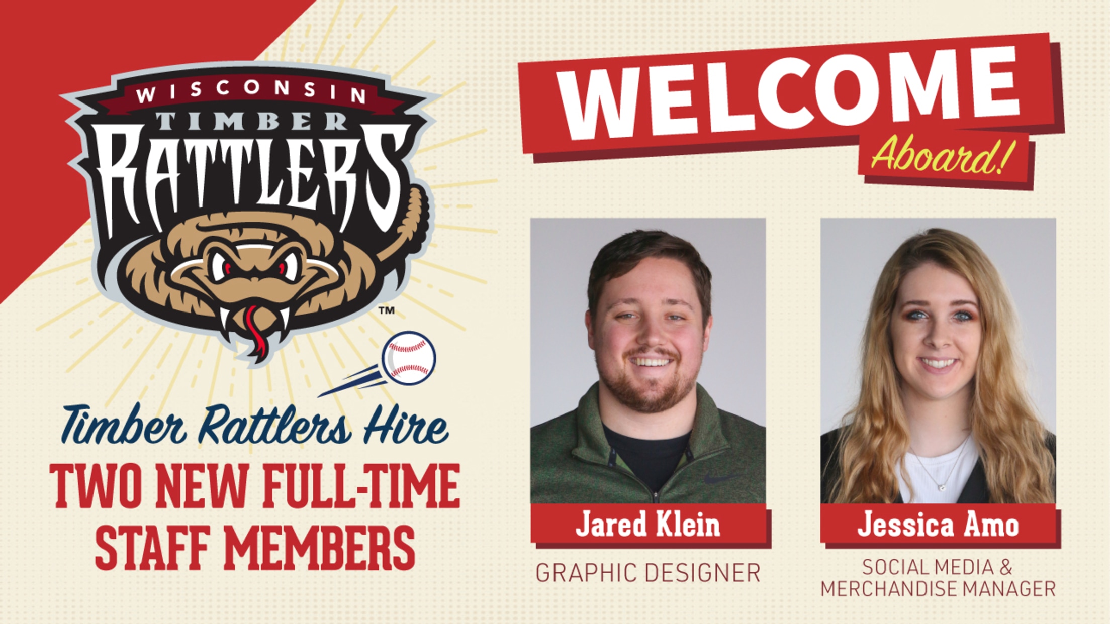 GRAND CHUTE, WI – The Wisconsin Timber Rattlers are announcing the addition of Jessica Amo and Jared Klein to their front office. Amo is the Social Media and Merchandise Manager. Klein is the new Graphic Designer. Both have started work for the team in preparation for the fast-approaching 2022 season.