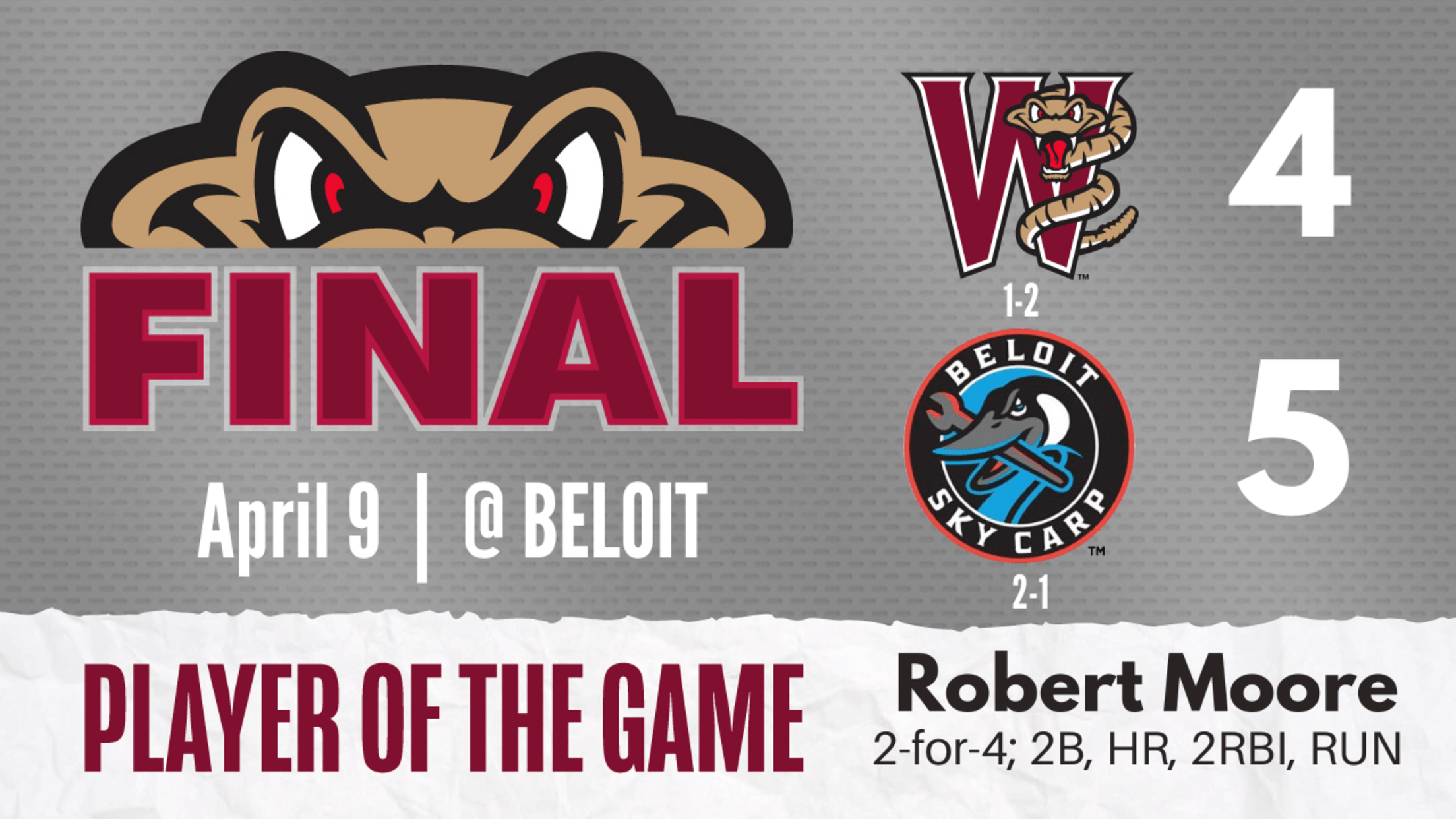 Moore paced the Wisconsin offense with a double, a homer, and a walk. Joey Matulovich and Taylor Floyd each pitched two scoreless innings out of the Rattlers bullpen.