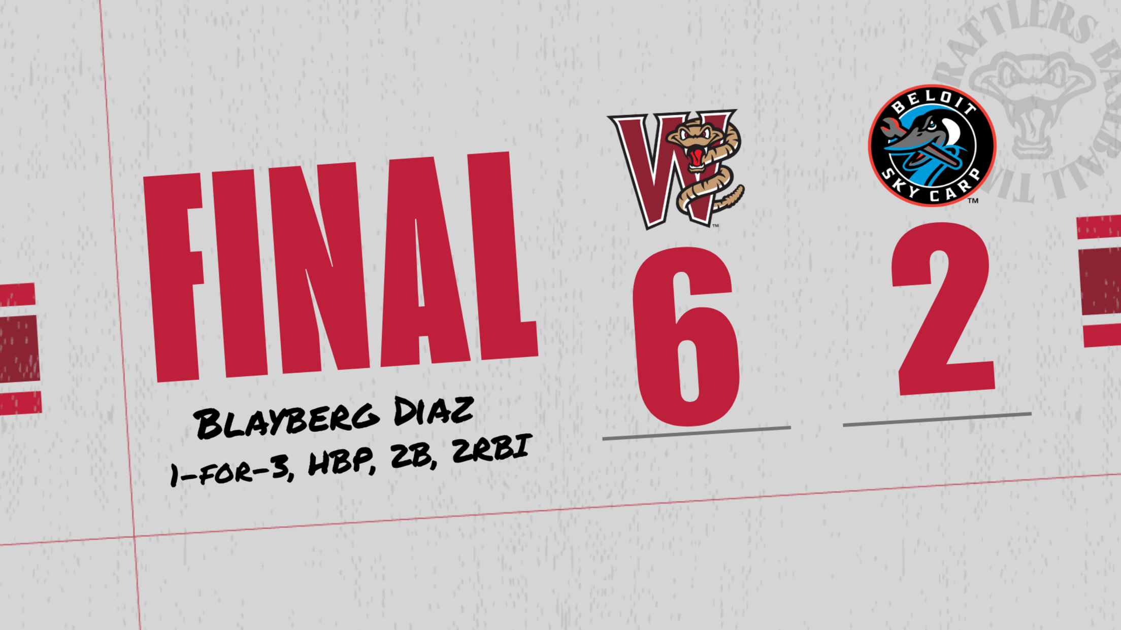 The Rattlers added to their lead in the top of the ninth. Guilarte singled with the bases loaded to drive in two runs. Alastre added another RBI single for the 6-2 lead.