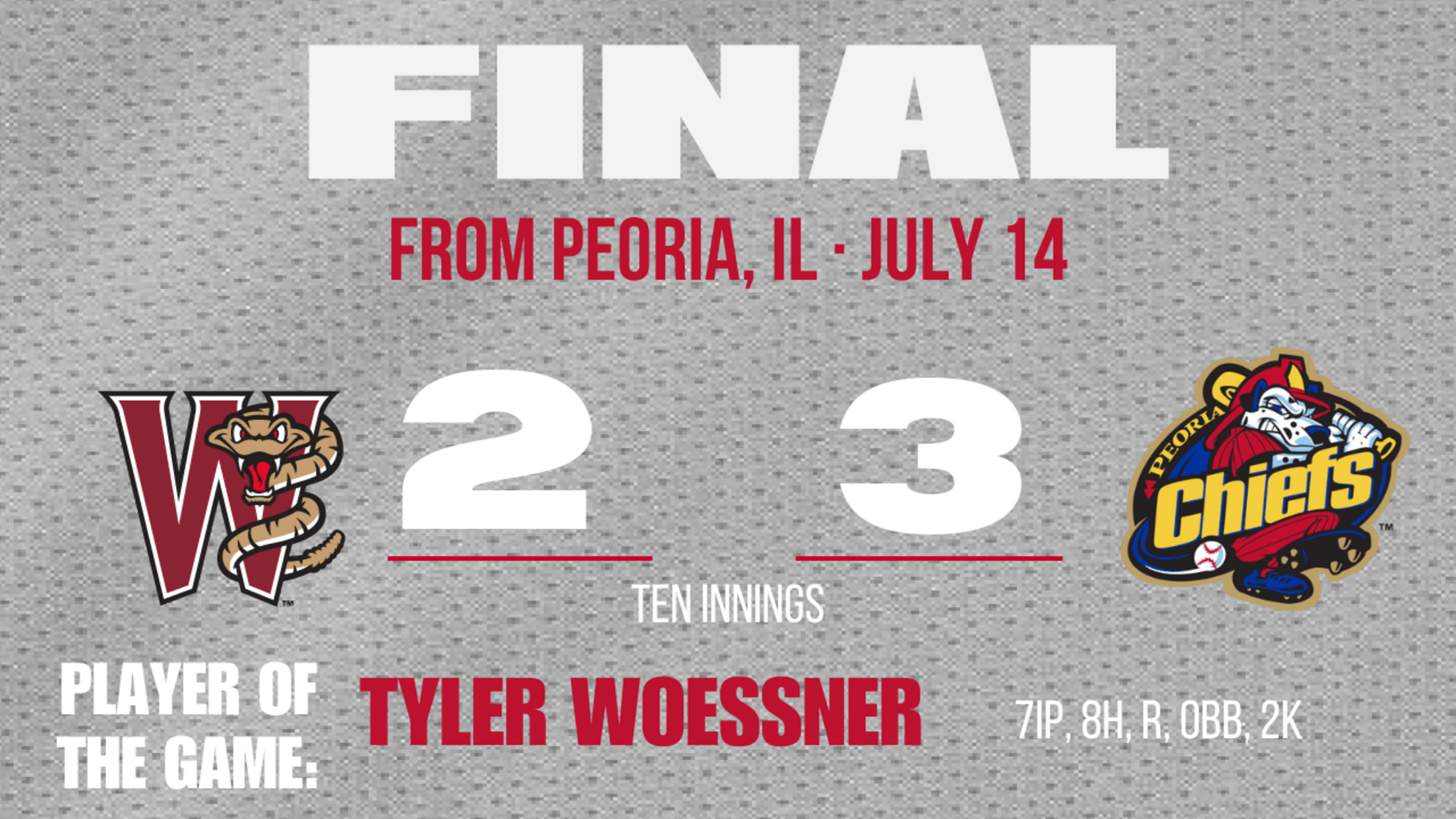 PEORIA, IL – The Wisconsin Timber Rattlers fought back from almost being no-hit by the Peoria Chiefs to take a 2-1 lead into the bottom of the tenth inning at Dozer Park on Friday night. However, the first-place Chiefs scored twice with two outs in the bottom of the tenth,