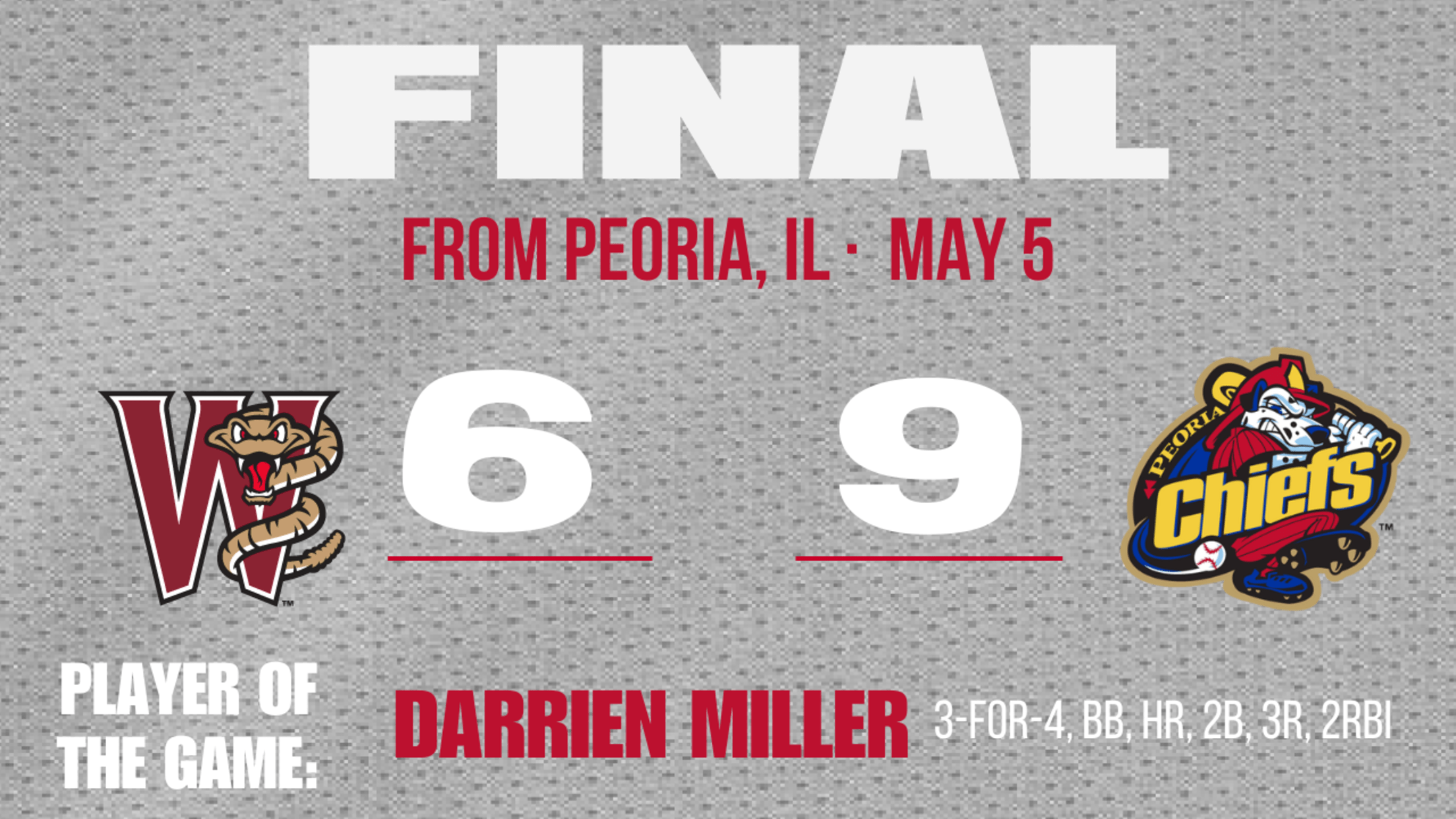 PEORIA, IL – The Wisconsin Timber Rattlers cracked thirteen hits and scored six runs on Friday night against the Peoria Chiefs at Dozer Park. However, the offense could only watch as the Chiefs took advantage of four Wisconsin errors to score four unearned runs on the way to a 9-6 victory over the Rattlers, Peoria’s four straight win over Wisconsin in the series.