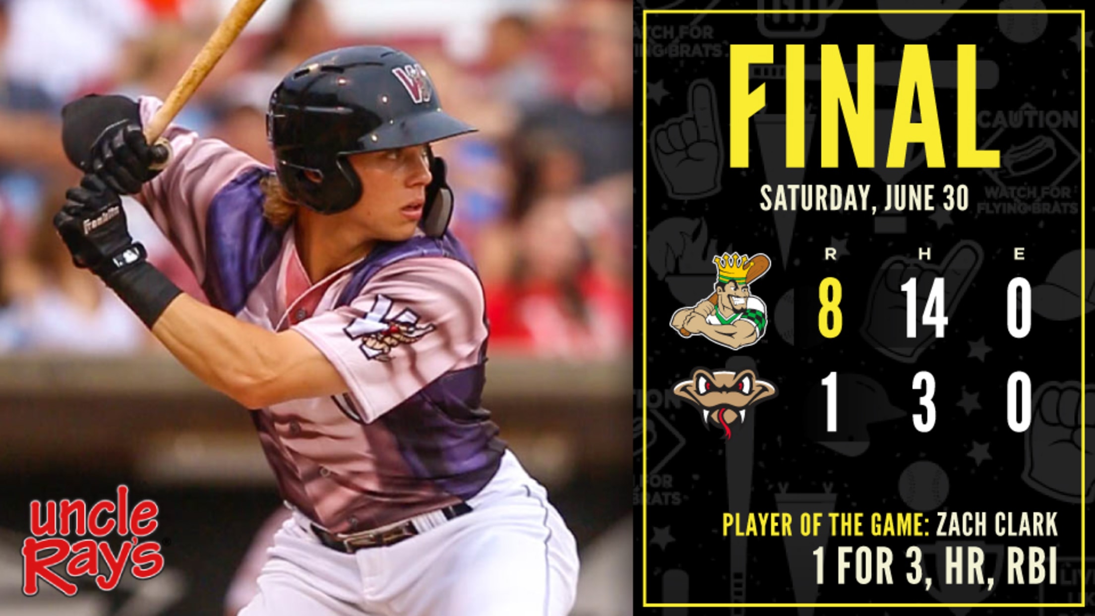 If you can't make it out to the ballpark, the radio broadcast is on AM1280, WNAM starting with the Potawatomi Hotel & Casino Pregame Show at 12:45pm. The broadcast is also available on the Tune In and IHeart Radio apps. Saturday's game will also be televised on CW-14 in Green Bay and My-24 in Milwaukee starting at 1:00pm. Subscribers to MiLB.tv can watch the game over the internet.