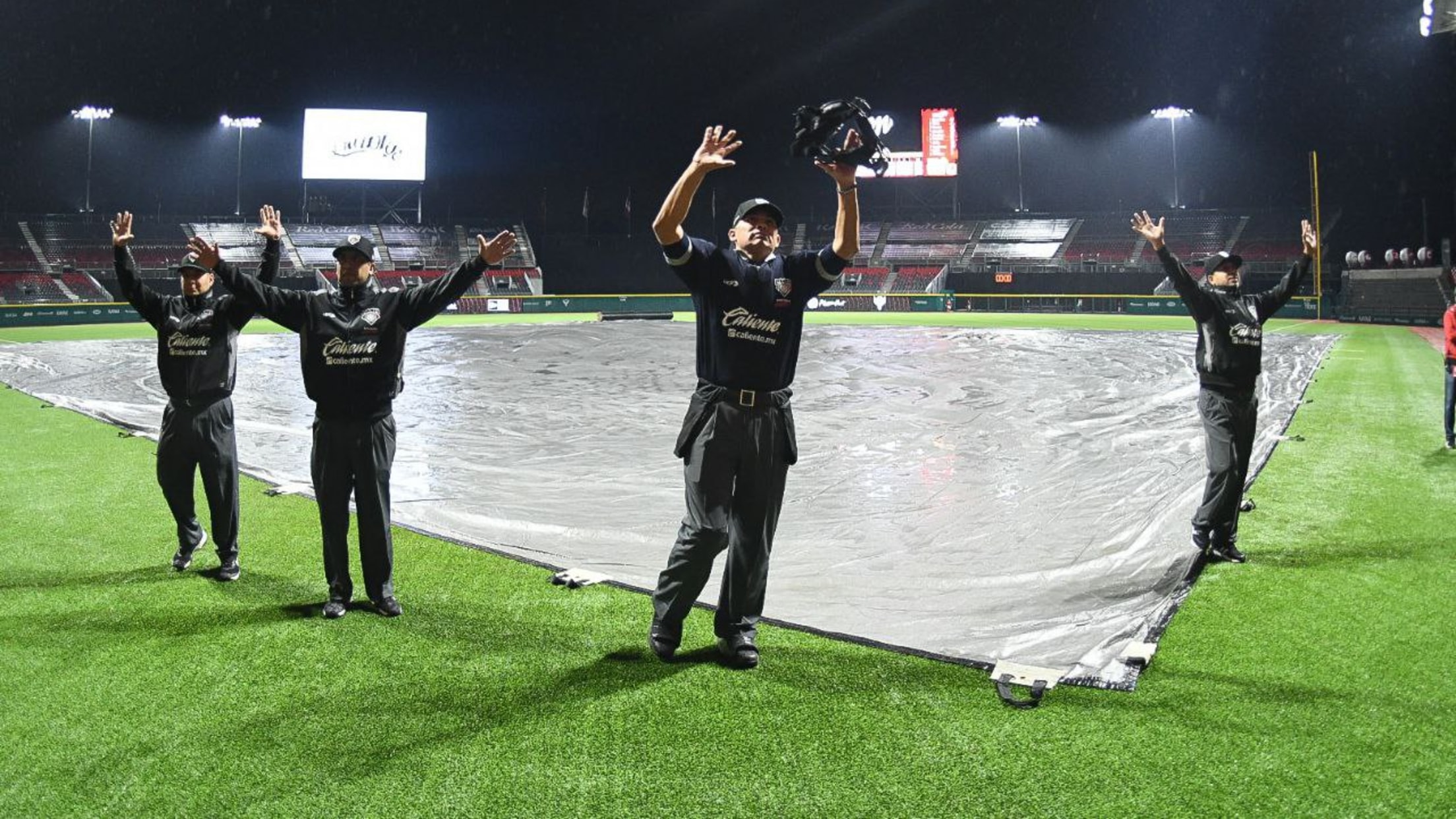 Se jugaba la parte baja de la quinta entrada y los Mariachis tenían ventaja de 9-6 en la pizarra, cuando la lluvia subió de intensidad, lo que llevó a los umpires a detener el encuentro a las 21:20 horas.