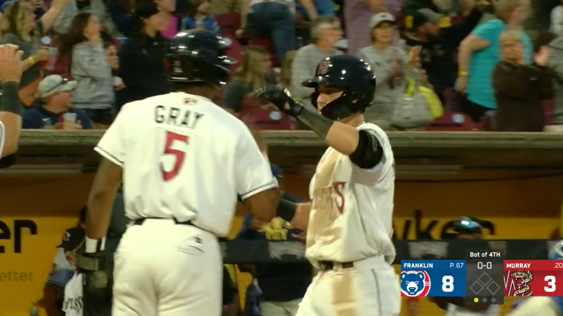 Franklin didn’t allow a hit through 3-1/3 innings, but the Rattlers put a few base runners on in the fourth. Jeferson Quero reached on a walk and Joe Gray Jr was hit by a pitch. Ben Metzinger got the Timber Rattlers on the board with the team’s first hit off Franklin. Metzinger, the 7th round pick of the Milwaukee Brewers in the 2022 draft, homered off the pole in left field for his first professional home run.
