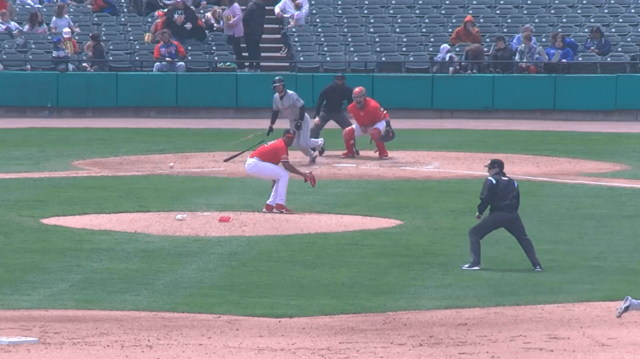They tried to bunt for a run to take the lead. However, Francisco Hernandez popped up his bunt attempt and Zavier Warren made the catch for the second out.