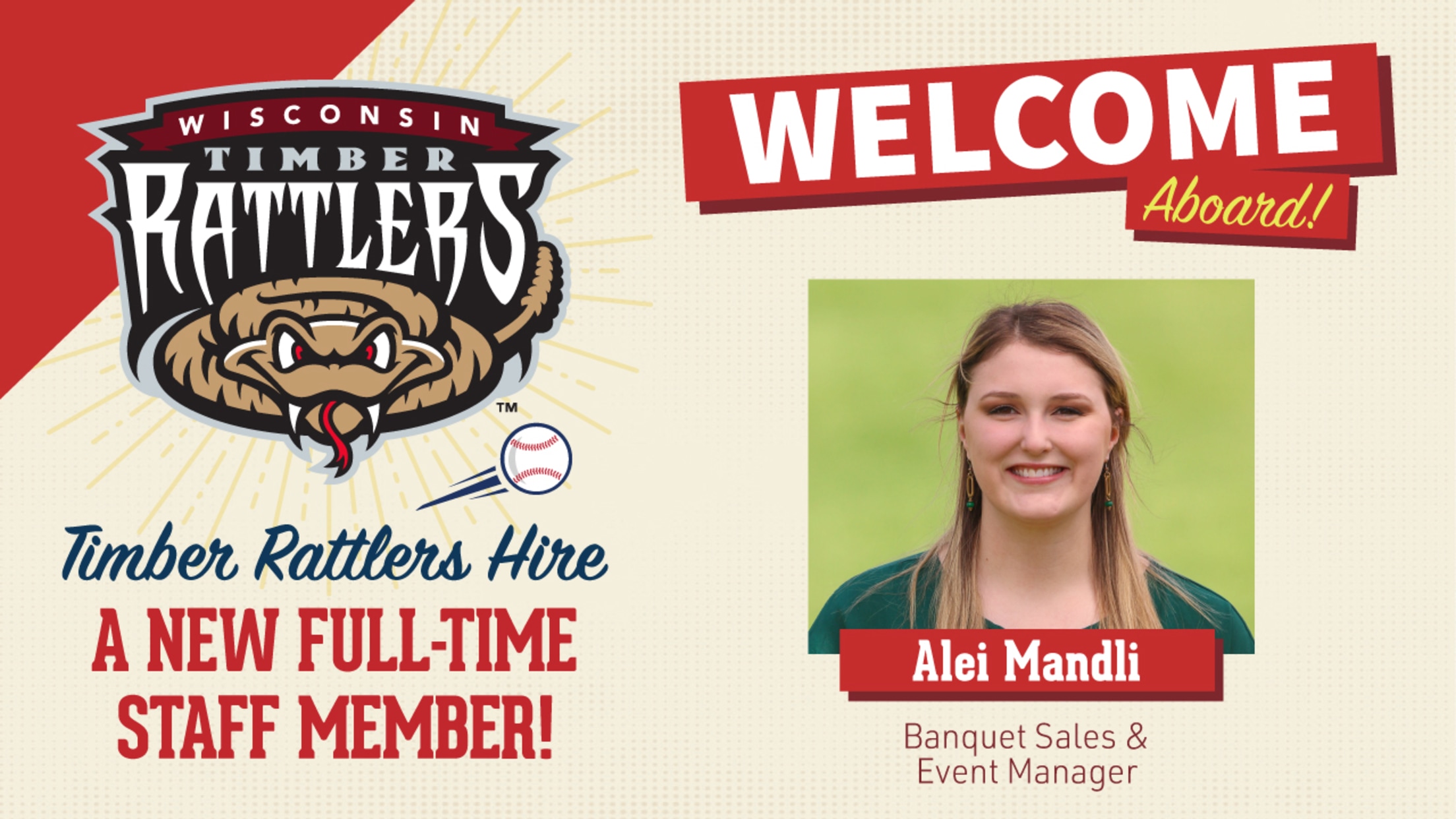 Mandli, a native of Racine, is a graduate of St. Norbert College with a degree in Communication and Media Studies. She previously worked for Green Shoes Events and Marketing to help plan weddings and corporate events while studying in Dublin, Ireland during the 2019 fall semester. Mandli also interned with Northwestern Mutual before joining the Timber Rattlers.
