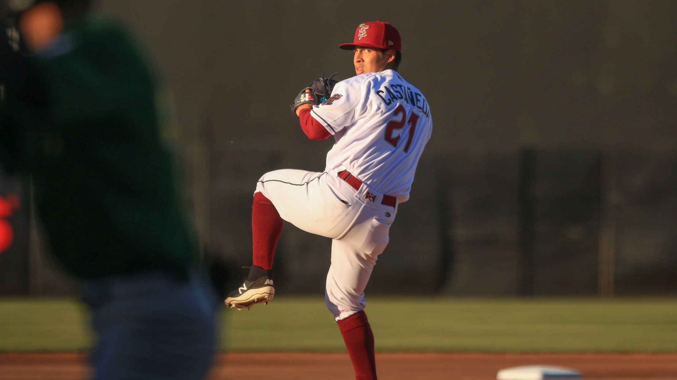 Castañeda worked a 1-2-3 seventh inning but walked the lead-off batter in the eighth. That was when the skies opened and the umpires had to call for the tarp to be placed on the field and the game entered a delay.