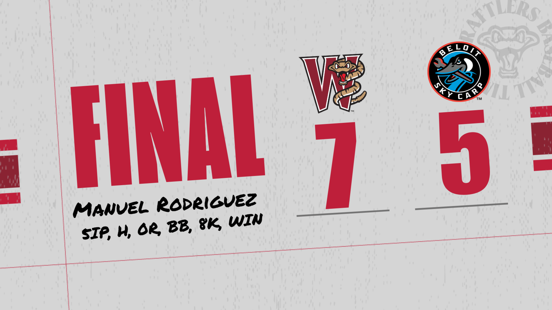 Rodriguez was sharp after he had allowed six runs in each of his last two starts for the Rattlers. He retired the first ten batters he faced before Dillon Head singled with one out in the fourth. Rodriguez pitched five innings, walked one, and struck out ten while allowed one hit and no runs to put himself in position for the win.
