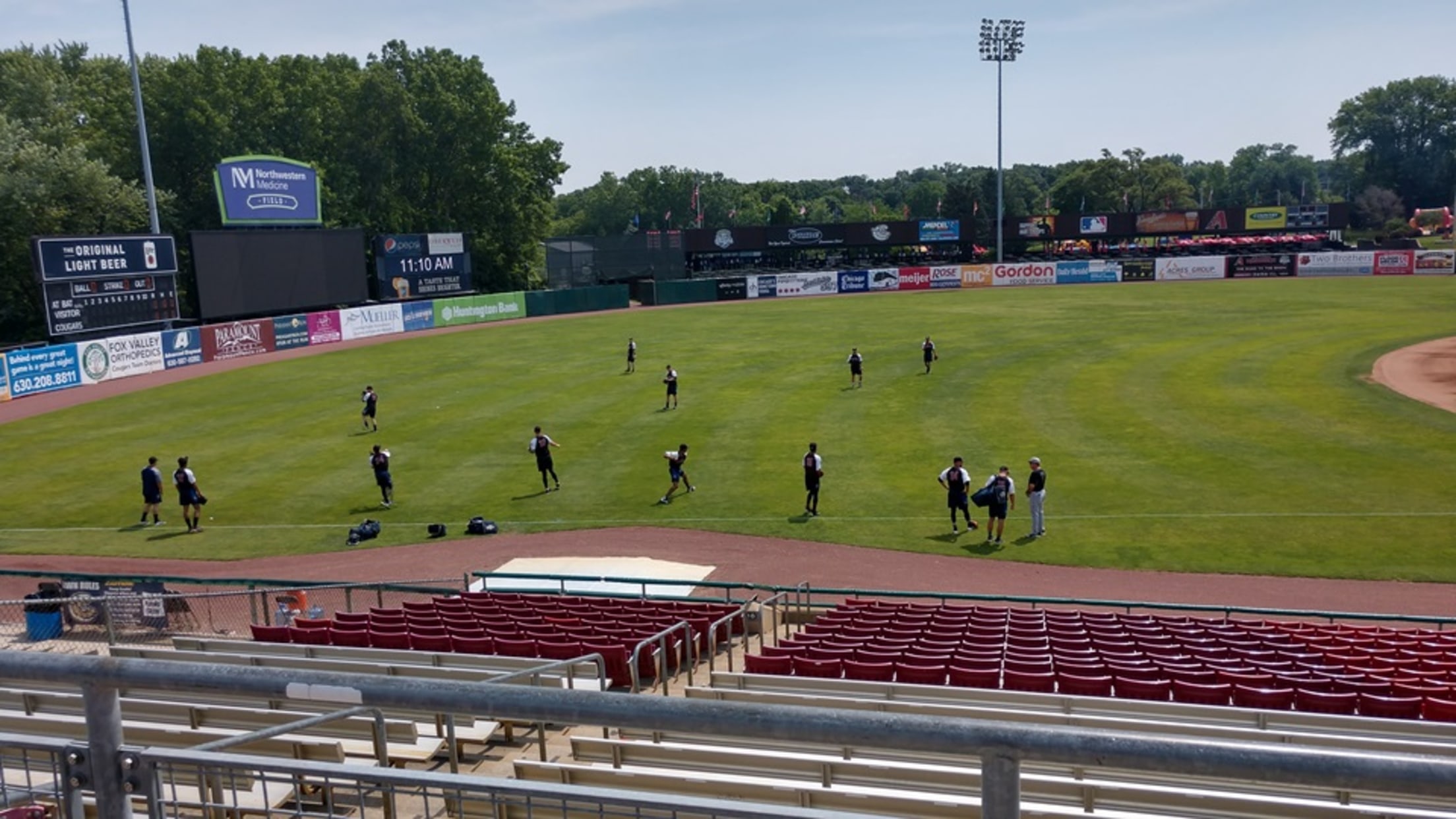 The heat index was over 100 degrees for most of the day and Timber Rattlers manager Matt Erickson reached his boiling point in the bottom of the fifth inning. Cody Beckman tossed to first on routine pickoff attempt with Grotjohn on base. Base umpire Gabe Alfonso called Beckman for a balk and Erickson came out to argue. The Wisconsin manager became more animated as he argued the call before being tossed for the third time this season.