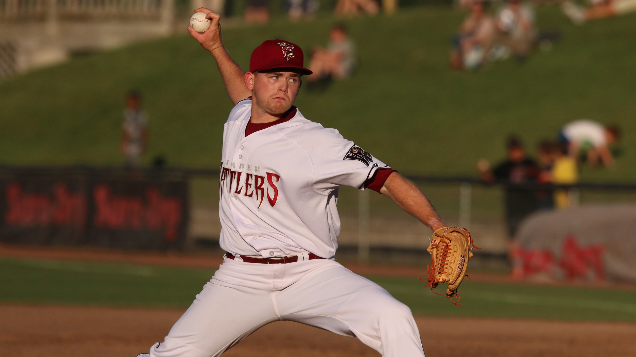 Justin King, in his Timber Rattlers debut, pitched a scoreless top of the eighth inning to keep the Rattlers down 2-0.