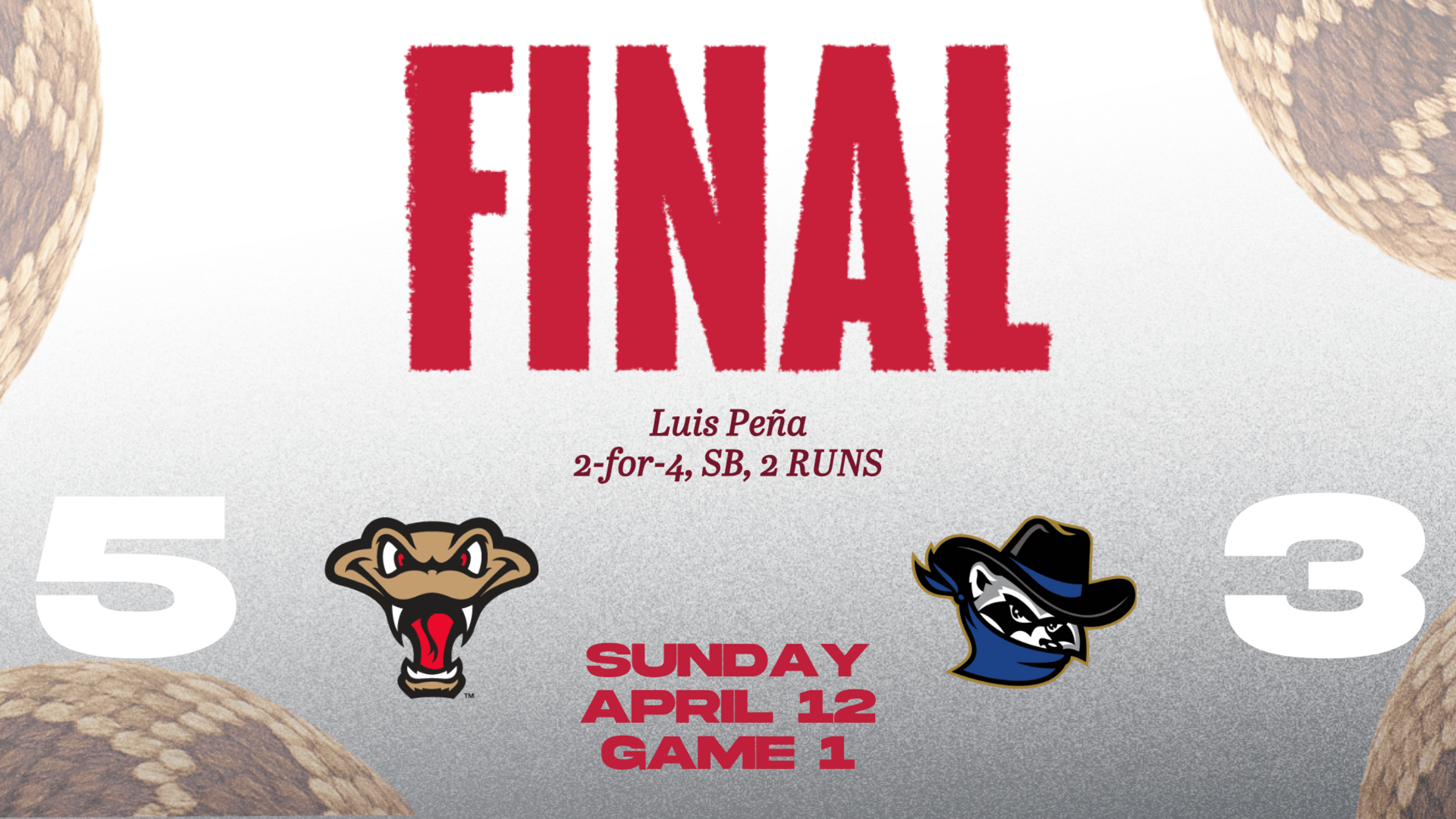 Tayden Hall started the Wisconsin comeback with a lead-off home run in the top of the third. Juan Baez and Luis Peña followed with singles. Andrew Fischer drove in Baez with a sacrifice fly to tie the game. Eric Bitonti gave the Rattlers the lead with an RBI double to score Peña.