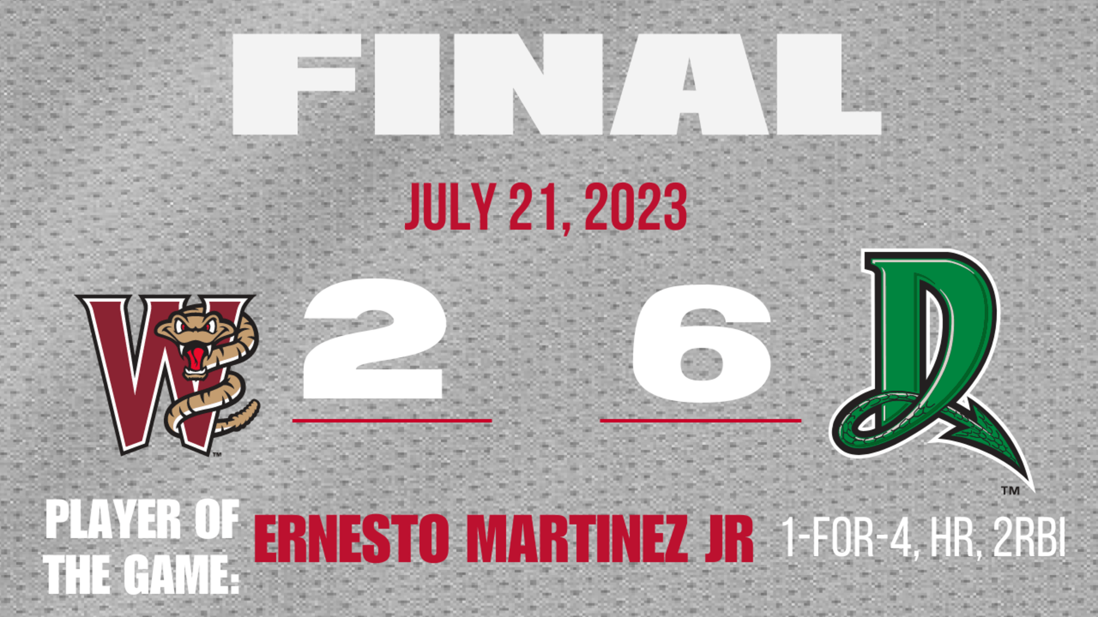 Ernesto Martínez Jr got the Timber Rattlers (12-10, 38-48) on the board with a monstrous, two-run home run to right in the top of the third inning. Martínez crushed a 2-2 pitch from Owen Holt. The ball hit on the concourse by a concession stand and bounced over the fence surrounding the stadium onto the street and eventually into a cluster of pedestrians. The homer was the tenth of the season for Martínez.