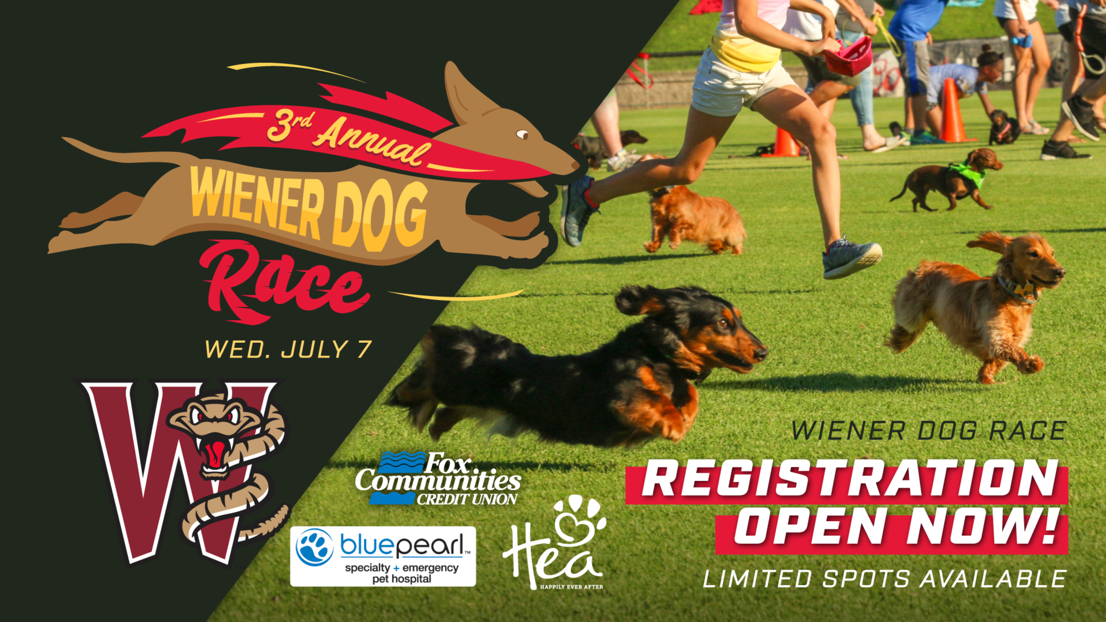GRAND CHUTE, WI – Calling All Wiener Dogs! The Wisconsin Timber Rattlers Wiener Dog Race presented by Fox Communities Credit Union, Happily Ever After Animal Sanctuary, and BluePearl Pet Hospital returns on Wednesday, July 7. That means it is time to register your dachshund. Registration is now open!