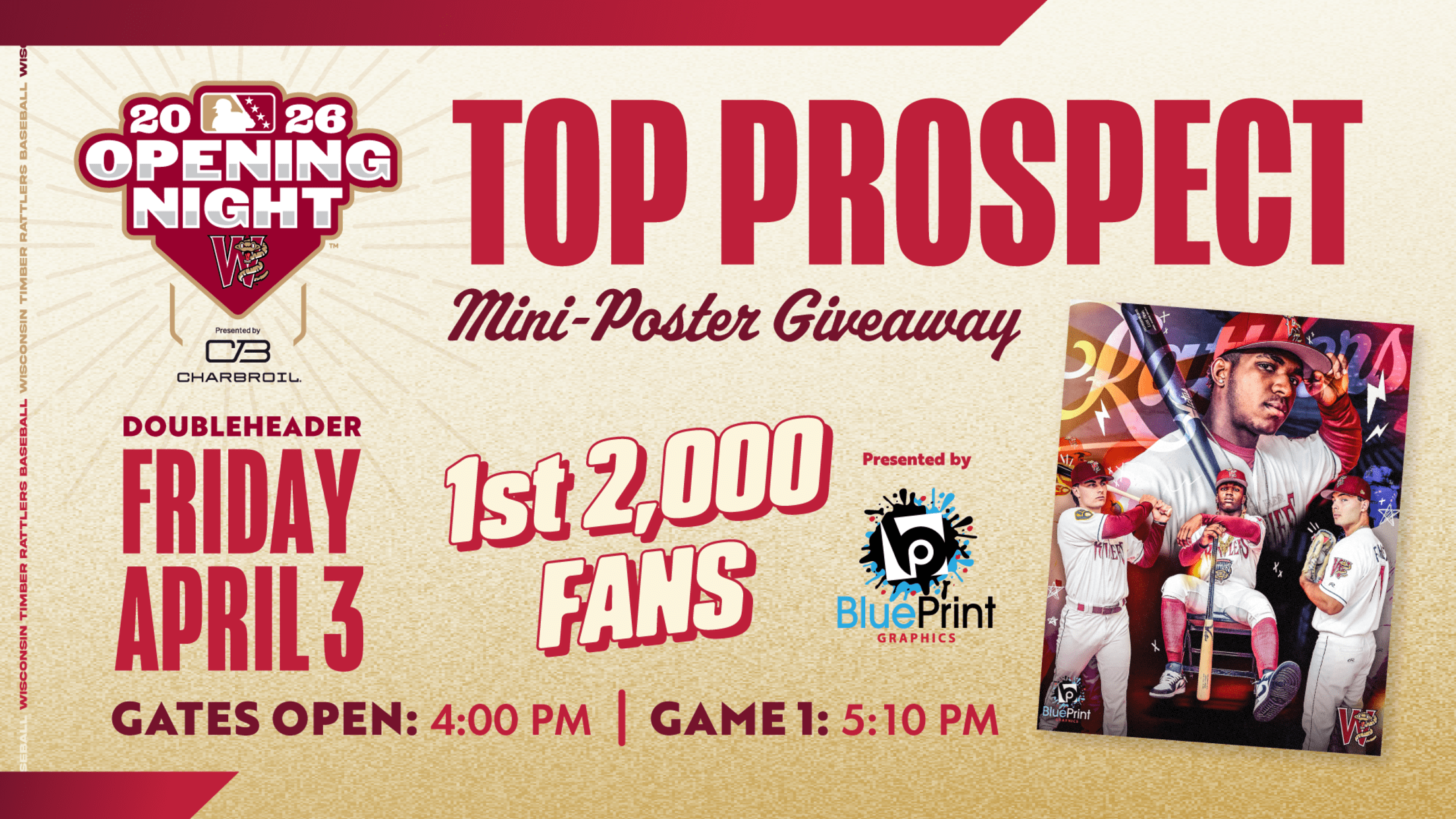 The Neuroscience Group Field parking lot will open at 3:00pm with the gates to the stadium opening at 4:00pm. Thursday’s giveaway, a special mini poster of Milwaukee Brewers prospects from Blue Print Service Company, has also been rescheduled to Friday night. The first 2,000 fans through the gates on Friday night will receive the poster.