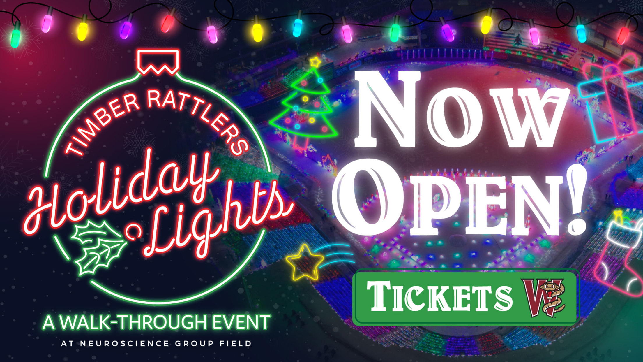 GRAND CHUTE, WI – The Wisconsin Timber Rattlers are excited to debut a new holiday experience for Northeast Wisconsin, “Timber Rattlers Holiday Lights – A Walk-Through Event.” Running from Friday, November 14 through Saturday, January 3, this festive celebration will transform Neuroscience Group Field with over one million lights and a variety of seasonal activities. Presented in partnership with Midwest Restoration, We Energies Foundation, Renewal by Andersen and Fox Communities Credit Union, this event promises a magical experience for families and fans of all ages. Click here to buy tickets!