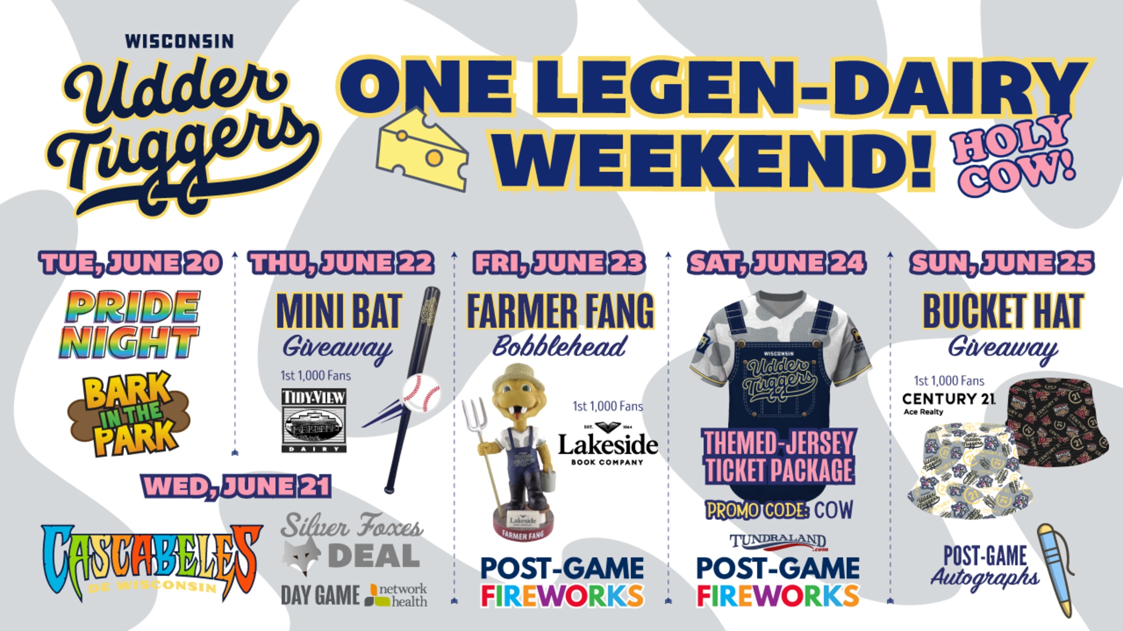 There are Udder Tugger-themed giveaways planned for all four games with additional celebrations of America’s Dairyland. Make sure to check the individual entries for details or just head out to Neuroscience Group Field for an incredible weekend.
