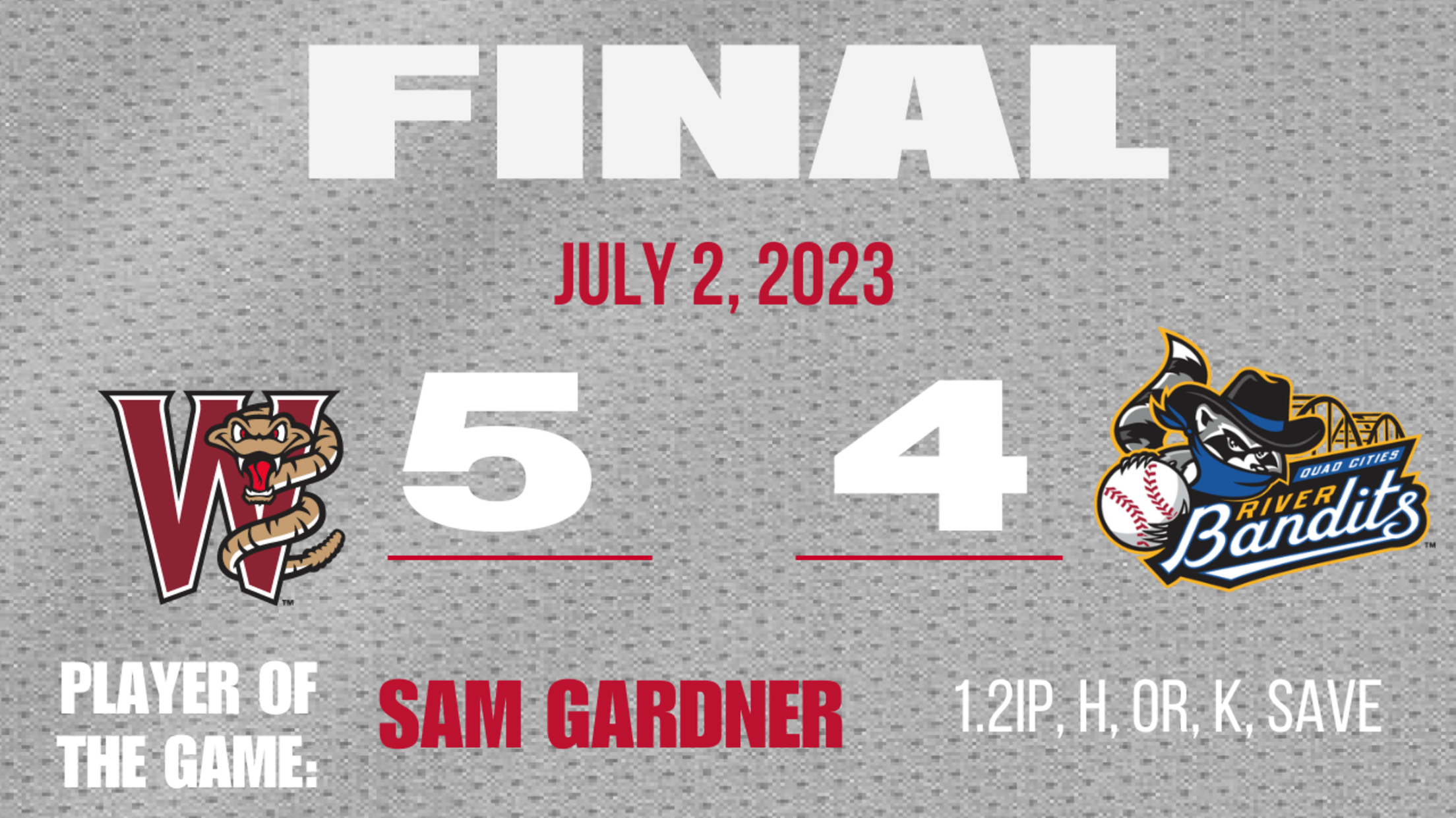 DAVENPORT, IA – One night after a heart-breaking walkoff loss to the Quad Cities River Bandits at Modern Woodmen Park, the Wisconsin Timber Rattlers found themselves trying to protect a late, one-run lead against the Bandits. This time the Rattlers held on for a 5-4 win as Sam Gardner got a huge strikeout to end the game with the tying run at second and the winning run at the plate.