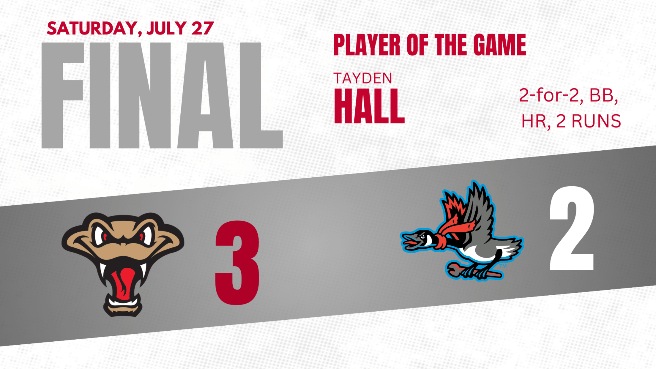 Tayden Hall gave the Timber Rattlers (61-33, 19-9) the lead with a no-doubt home run to right-center with one out in the top of the third. The solo shot was Hall’s second home run of the season.