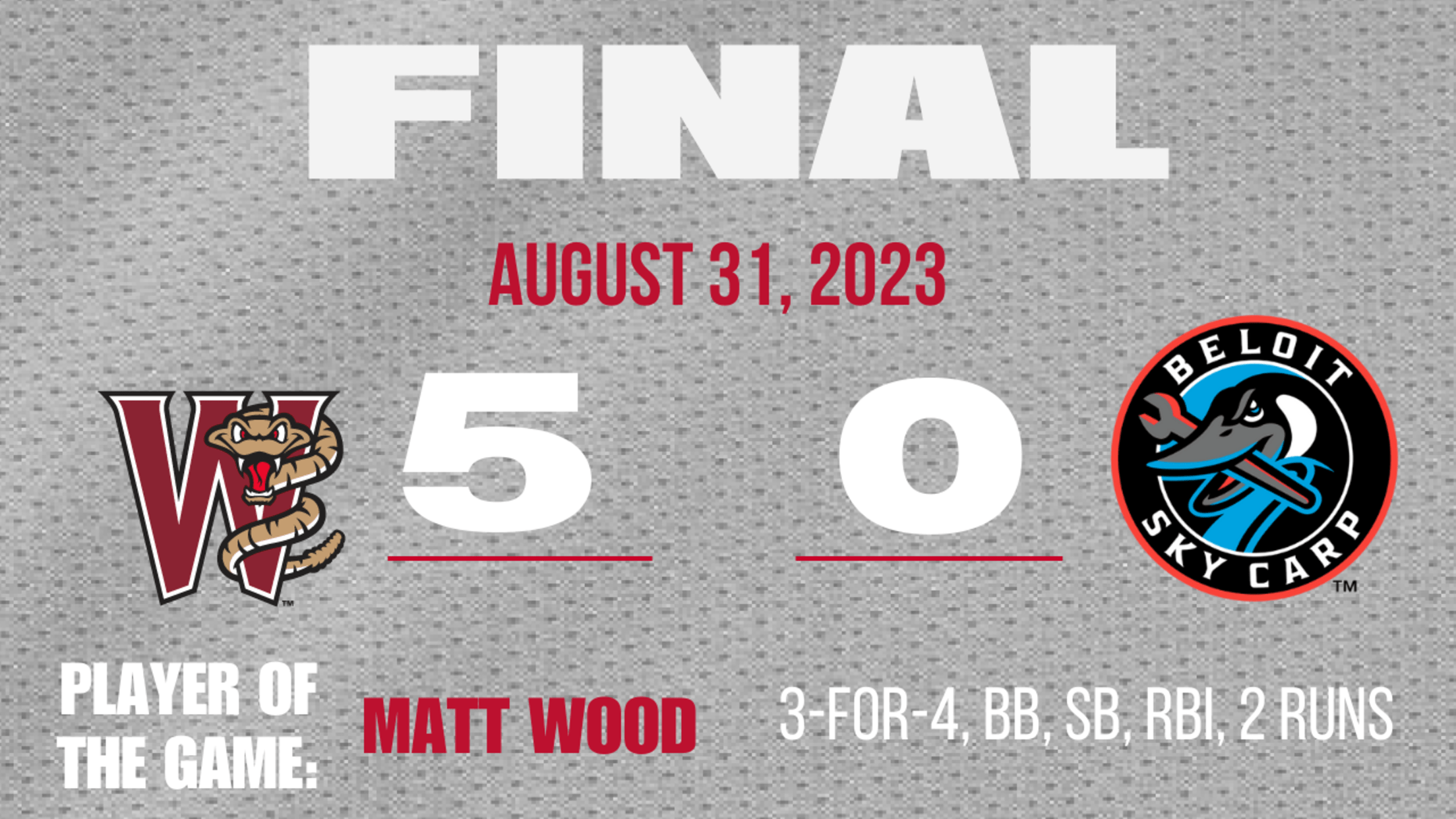BELOIT, WI – The Wisconsin Timber Rattlers are trying to make a memorable dash to the finish of the 2023 Midwest League. On Thursday night at ABC Supply Stadium, Wisconsin carried a no-hitter into the eighth inning as they shut out the Beloit Sky Carp 5-0 to claim their fifth