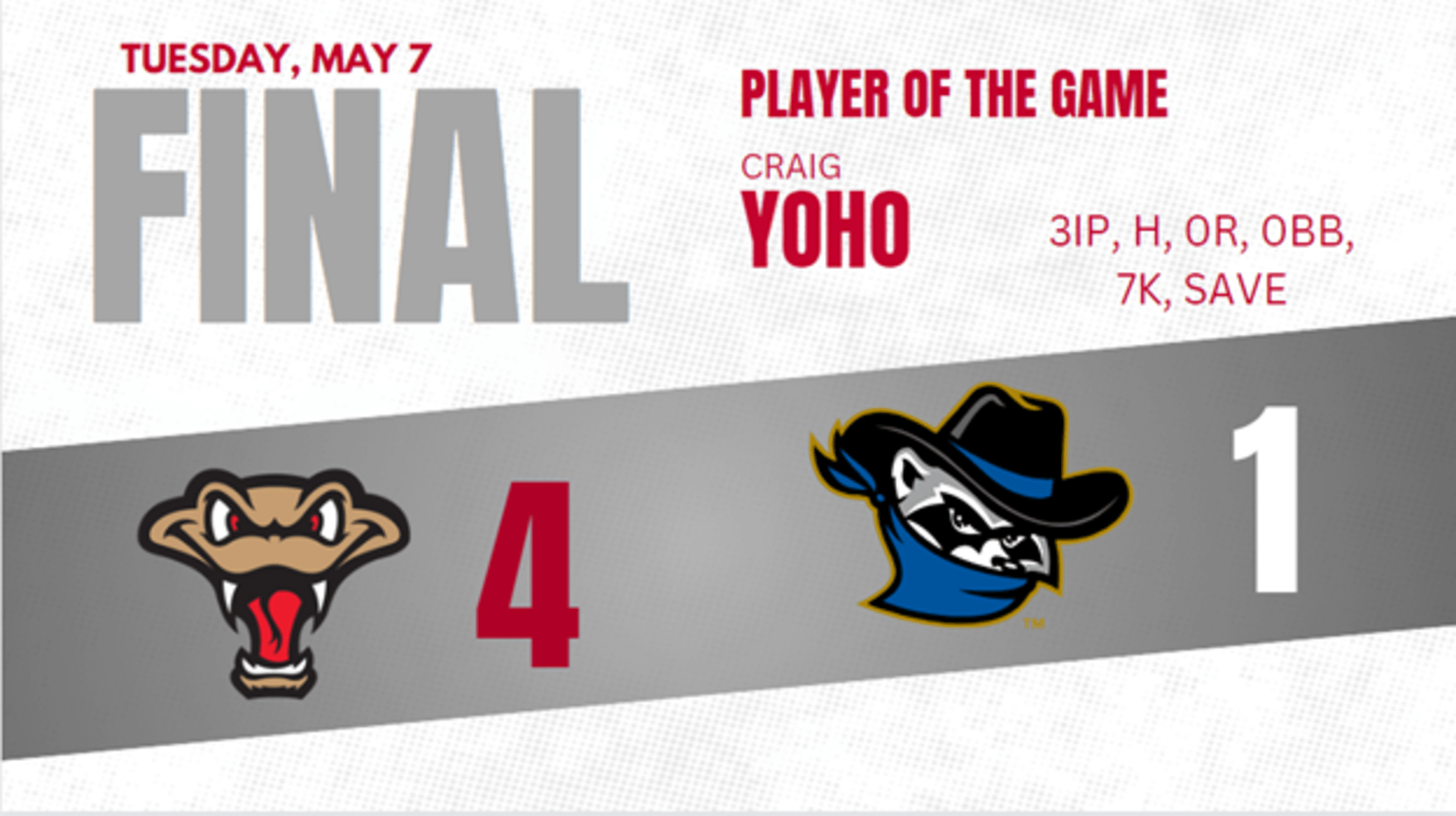 Craig Yoho was the next bullpen arm for Wisconsin. He was also the final bullpen arm the Rattlers would need in the game. Yoho pitched three scoreless innings with seven strikeouts to earn his fourth save of the season. He retired the first eight batters he faced before giving up a two-out hit in the ninth. Yoho regrouped and struck out Kale Emshoff looking to end the game.
