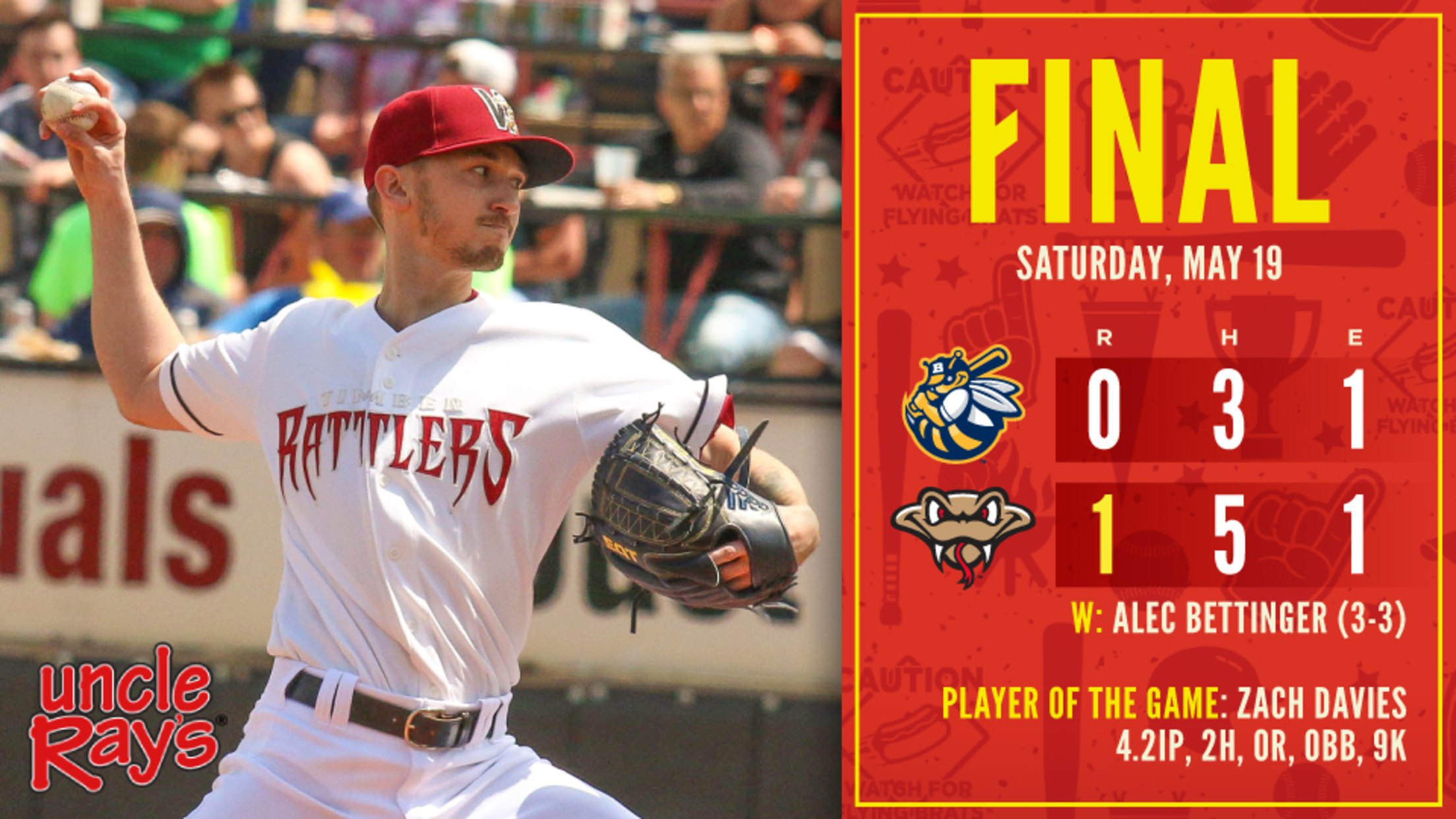 GRAND CHUTE, WI - The Wisconsin Timber Rattlers got a major league performance from Zach Davies on Saturday afternoon and it propelled them to a 1-0 win over the Burlington Bees at Neuroscience Group Field at Fox Cities Stadium.Davies made his rehabilitation start memorable for the 6,063 fans in attendance