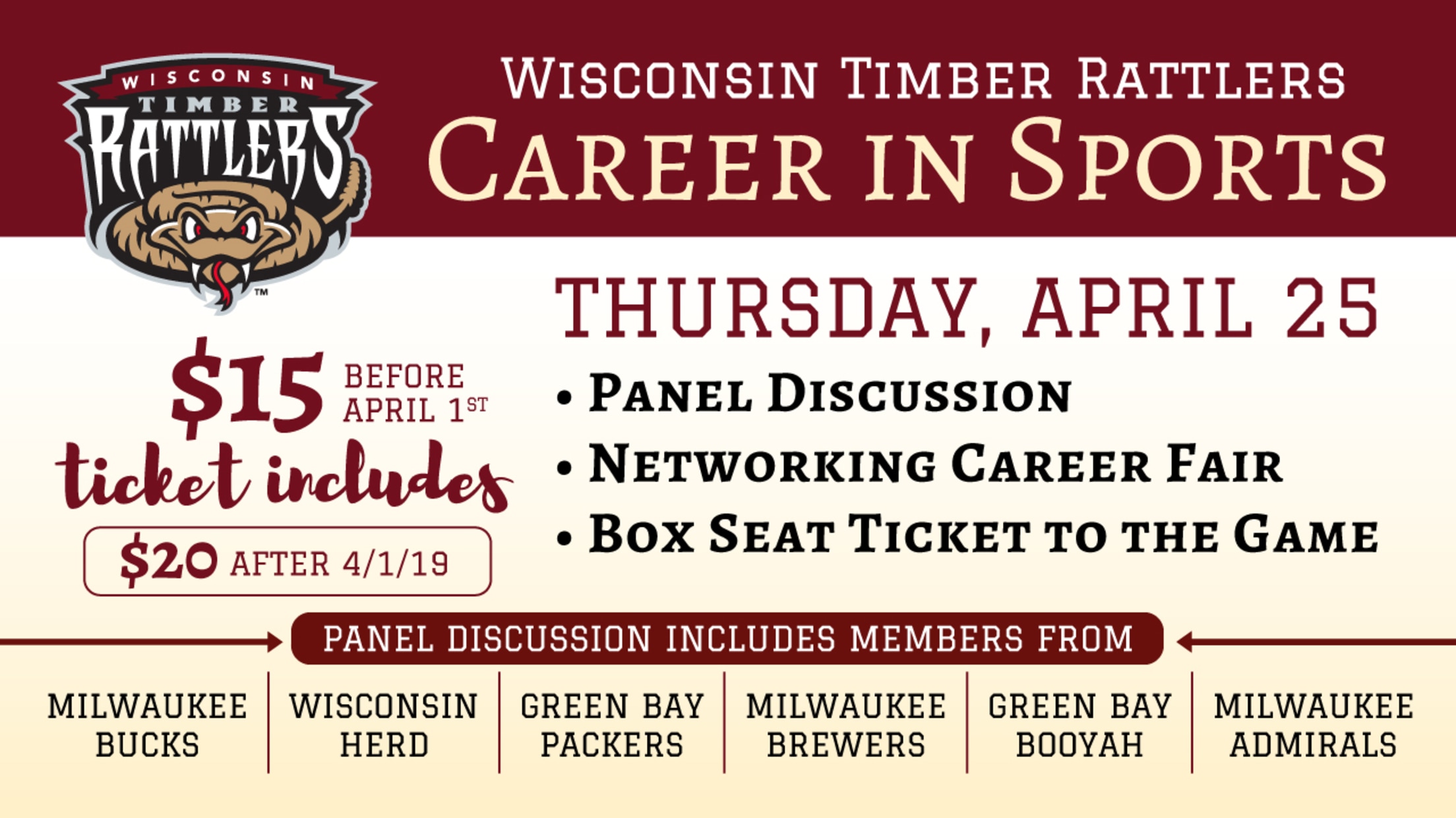 GRAND CHUTE, WI - The Wisconsin Timber Rattlers will host a Career in Sports Night on Thursday, April 25 at Neuroscience Group Field at Fox Cities Stadium. The event will begin at 4:30pm in the Fox Community Credit Union Fox Club. The panel discussion about careers in sports will begin at