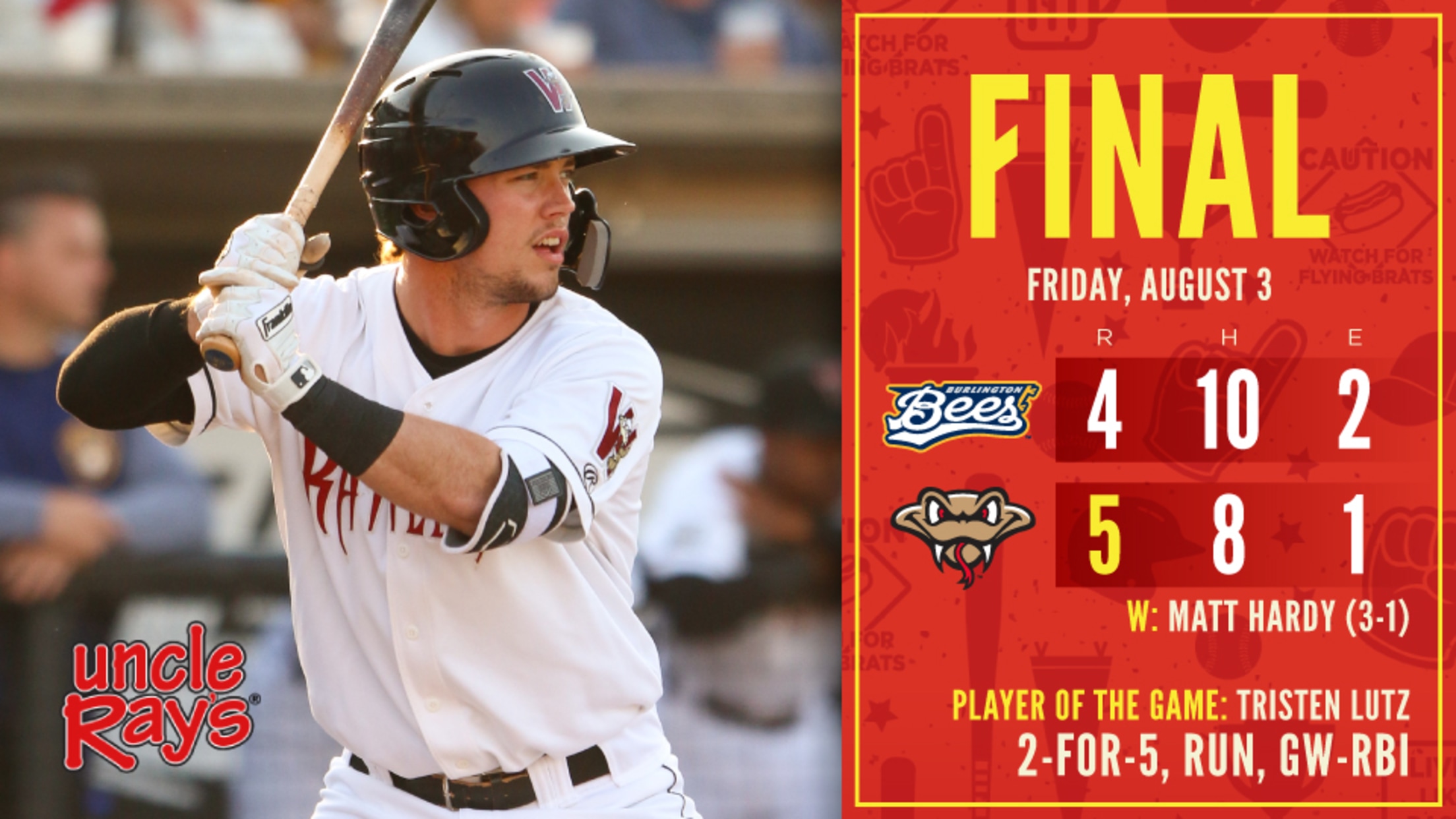 GRAND CHUTE, WI - The Wisconsin Timber Rattlers defeated the Burlington Bees 5-4 in ten innings on Friday night at Neuroscience Group Field at Fox Cities Stadium. Tristen Lutz delivered the walkoff hit with an RBI single in the bottom of the tenth. Wisconsin took two out of three games