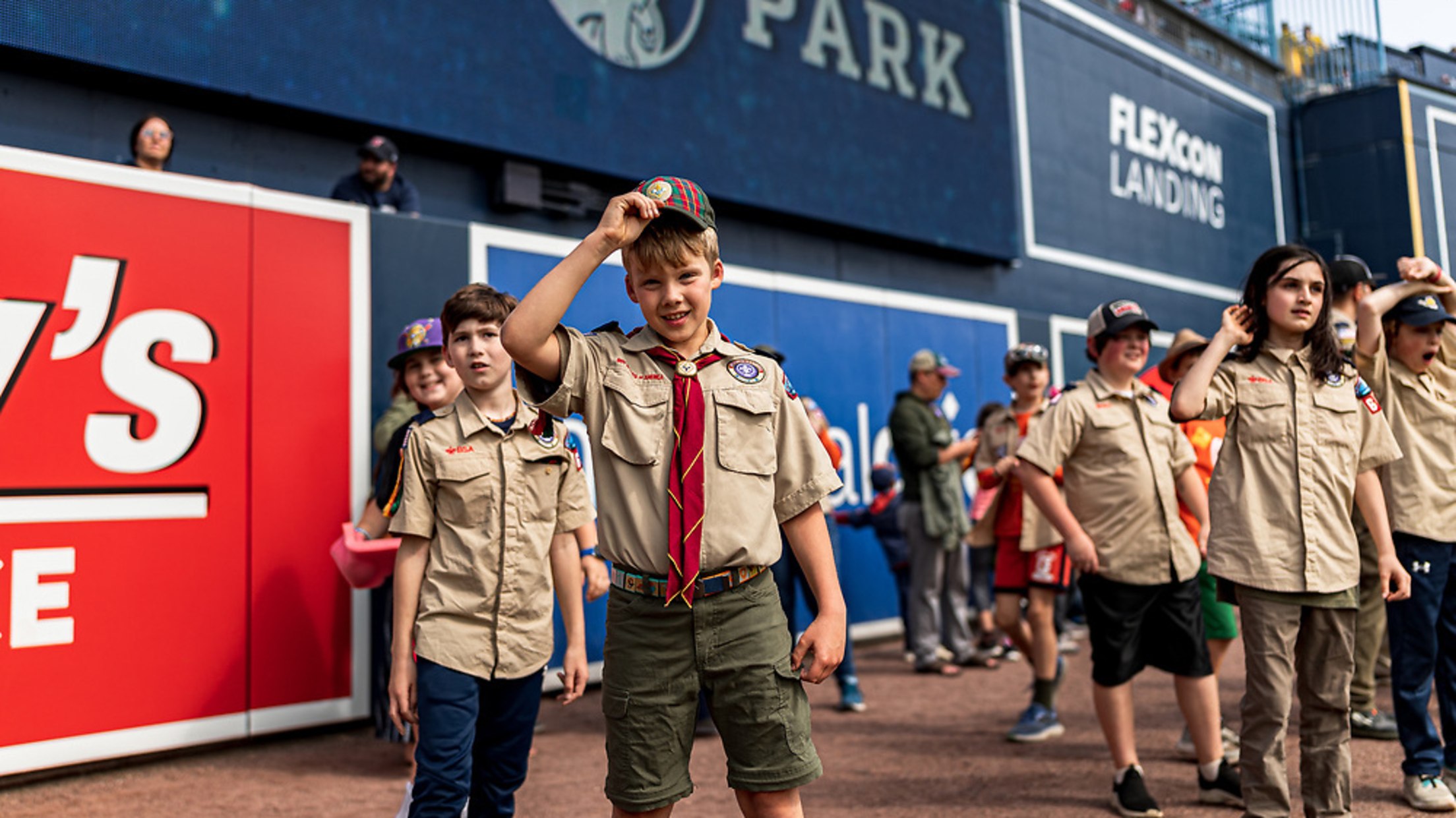 Miles de Hearts of New England Scouts fueron reconocidos por todo lo que hacen en la comunidad al tener la oportunidad de dormir en el campo donde los WooSox corren, atrapan y batean jonrones. Los cazatalentos agarraron sacos de dormir y almohadas después de Sunset Catch y se dirigieron al jardín después de la victoria de la doble cartelera el sábado por la noche. A las 10 p.m., los exploradores vieron a Chicken Little en el tablero de video de Polar Park con el desayuno en el estadio que tuvo lugar a la mañana siguiente.