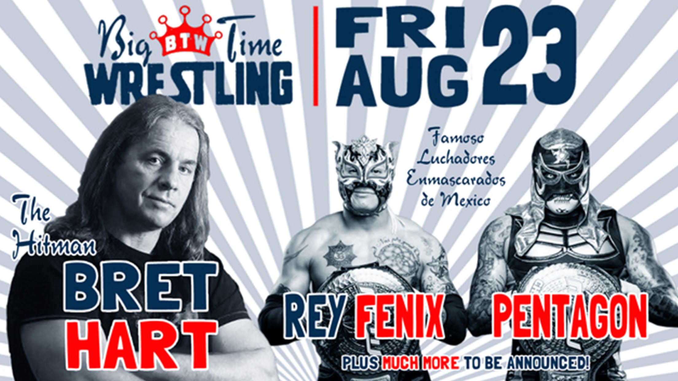 Big Time Wrestling features some of the top names in the sport, led this year by WWE Hall of Fame inductee, Bret "The Hitman" Hart. Other standouts appearing at McCoy on August 23 include Rey Fenix and Pentagon. The card is subject to change and more superstars will be added to the line-up in the coming weeks.