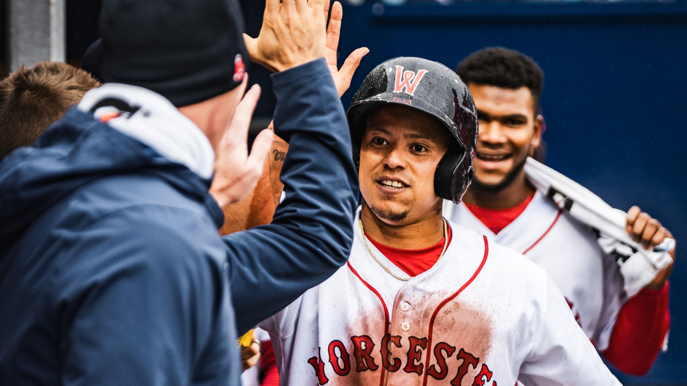 After a strikeout, Jeter Downs hit a ground ball that was knocked down by the shortstop, scoring one. The RBI single pushed Muñoz to third, and he scored by stealing home with a headfirst slide to put Worcester up 4-0.