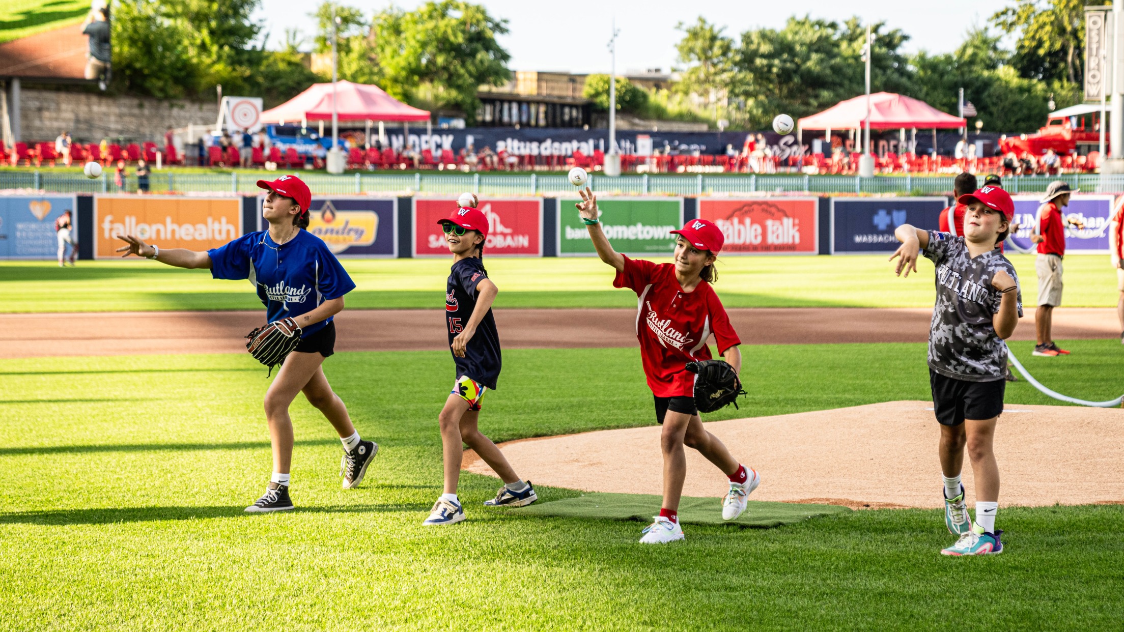 This season, four girls in the Rutland Little League have proven they can help their baseball teams win championships. The Rutland Little League boasts 9-year-olds Emmy Miller, Mia Berberian, 10-year-old Olivia Crowne, and 12-year-old Amanda Jaillet. On Thursday, July 11, 2024, the girls were welcomed to Polar Park to throw out ceremonial first pitches before the Worcester Red Sox faced off against the Rochester Red Wings.