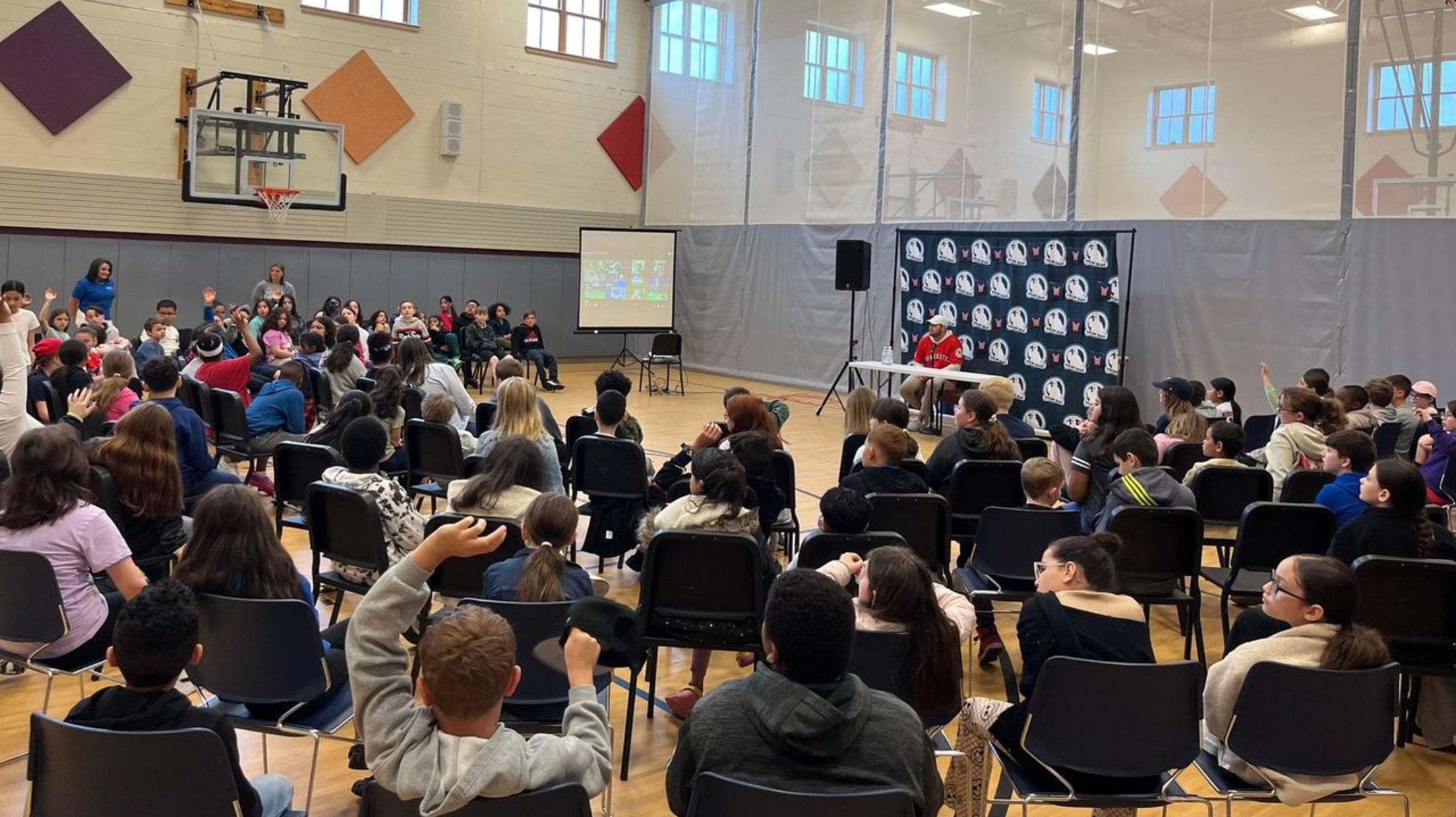 WooSox first baseman Niko Kavadas visited Park Avenue Elementary School in Webster, Massachusetts on Friday, May 3, to meet with over one hundred 4th grade students via the WooSox Foundation Care-A-Van, presented by Bank of America.