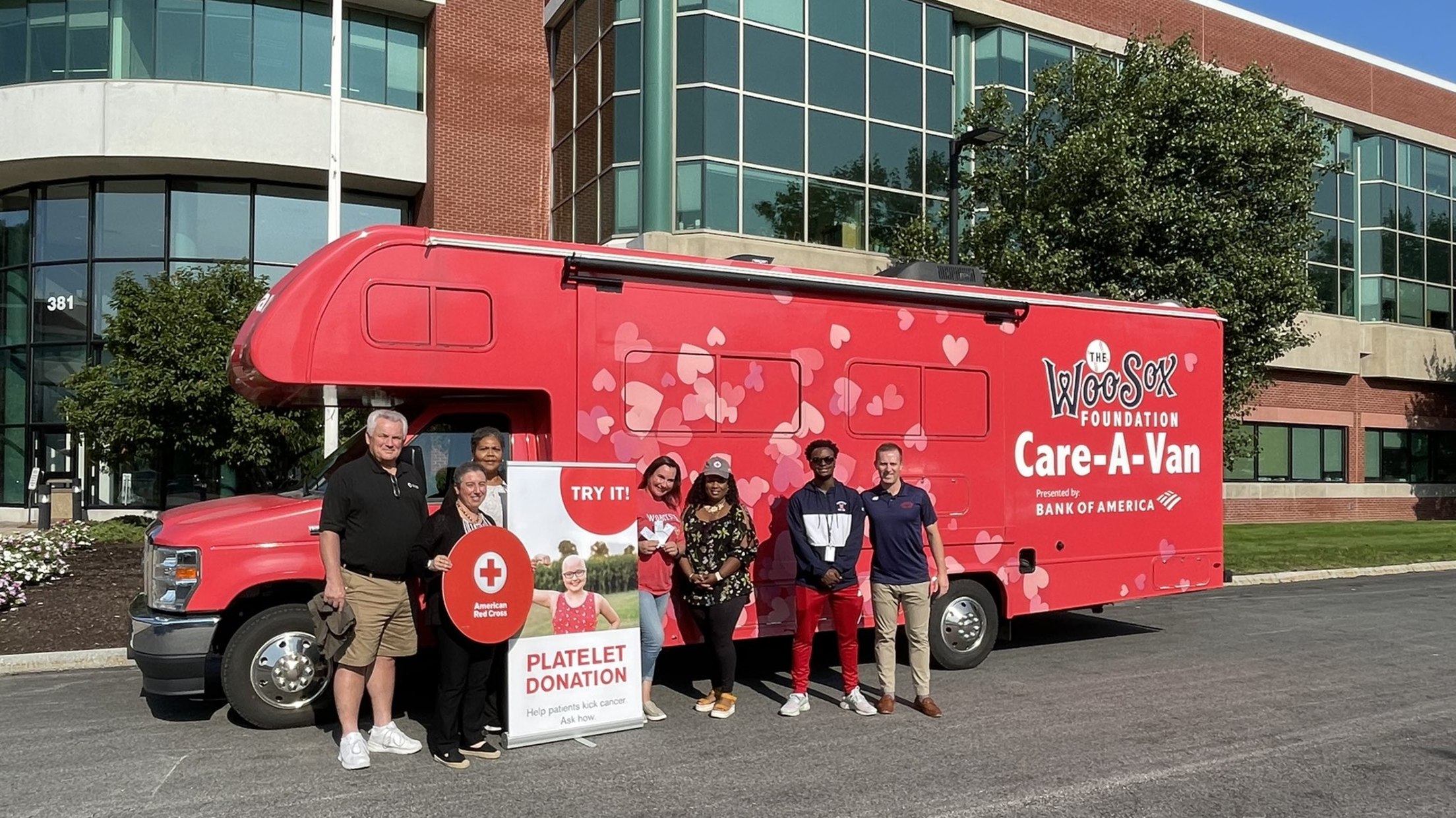 The Worcester Red Sox began the weekend at the American Red Cross Central Mass headquarters at 381 Plantation Street in Worcester, where WooSox front office members and Smiley Ball arrived in the WooSox Foundation Care-A-Van, presented by Bank of America.